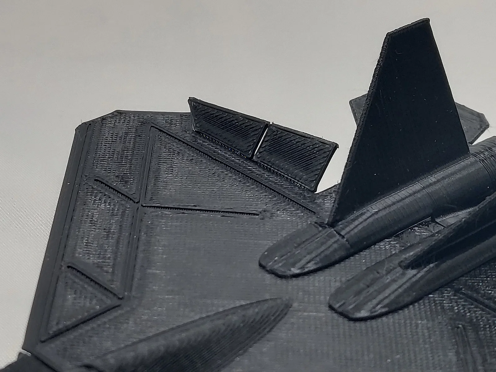(Thu nhỏ 50%) Cánh được thiết kế để in phẳng nhằm giúp các cánh tà hoạt động được, buồng lái nên đặt hướng mũi lên trên, và thân máy bay nên đặt hướng ống xả xuống dưới.