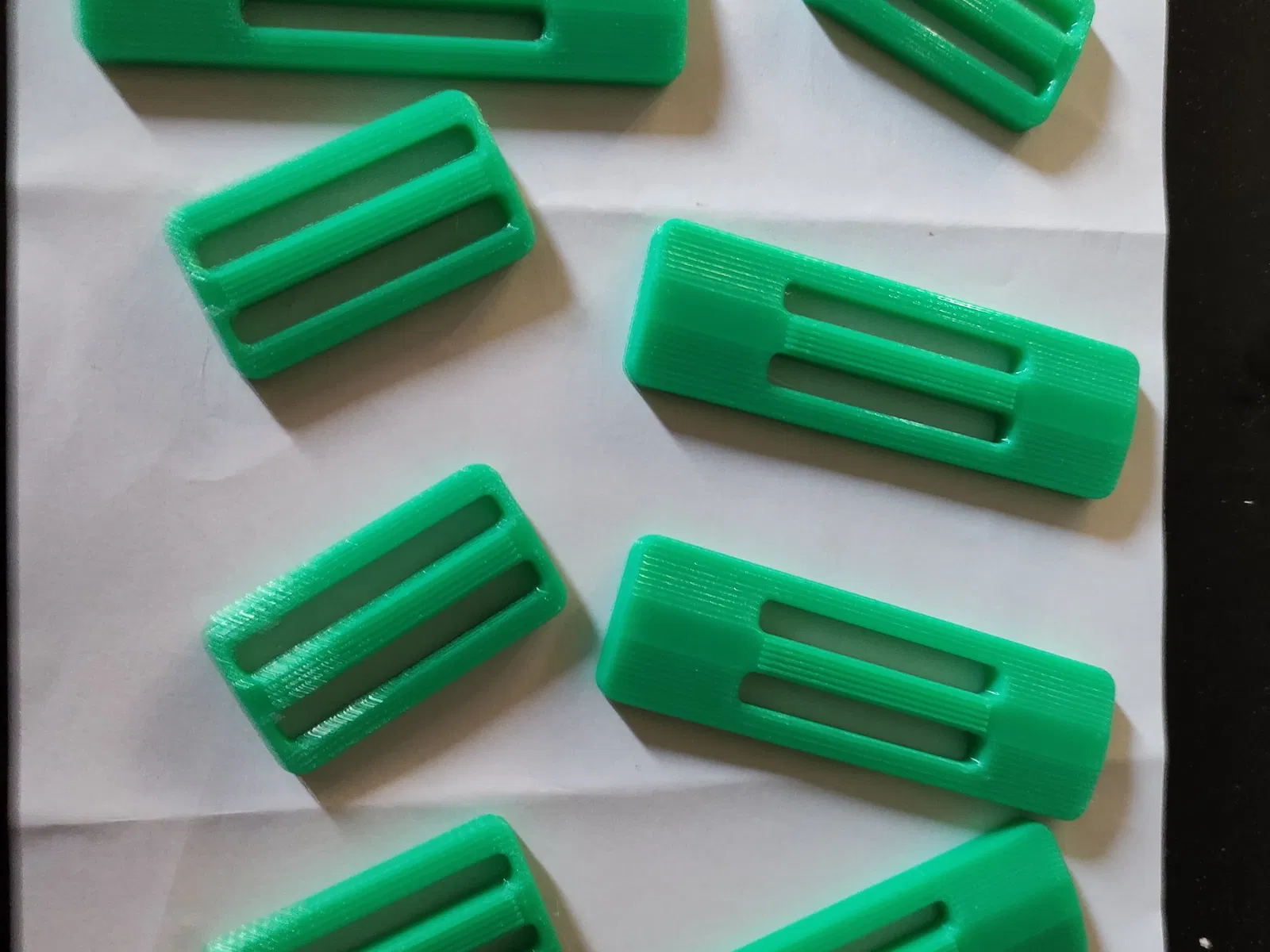 Xâu những cái này vào dây đai trọng lượng để ngăn các trọng lượng trượt xung quanh. Tốt nhất nên in bằng nhựa bền và linh hoạt (PETG hoặc nylon) với độ đổ đầy cao. Nên vừa với dây đai/webbing tiêu chuẩn 5 cm. Có một tệp cho các cái ngắn (bình thường) (ví dụ: cho dây đai trọng lượng) và các cái rộng (khi dây đai/webbing đi qua một vòng webbing và các cái ngắn sẽ vừa qua). Xem hình ảnh.