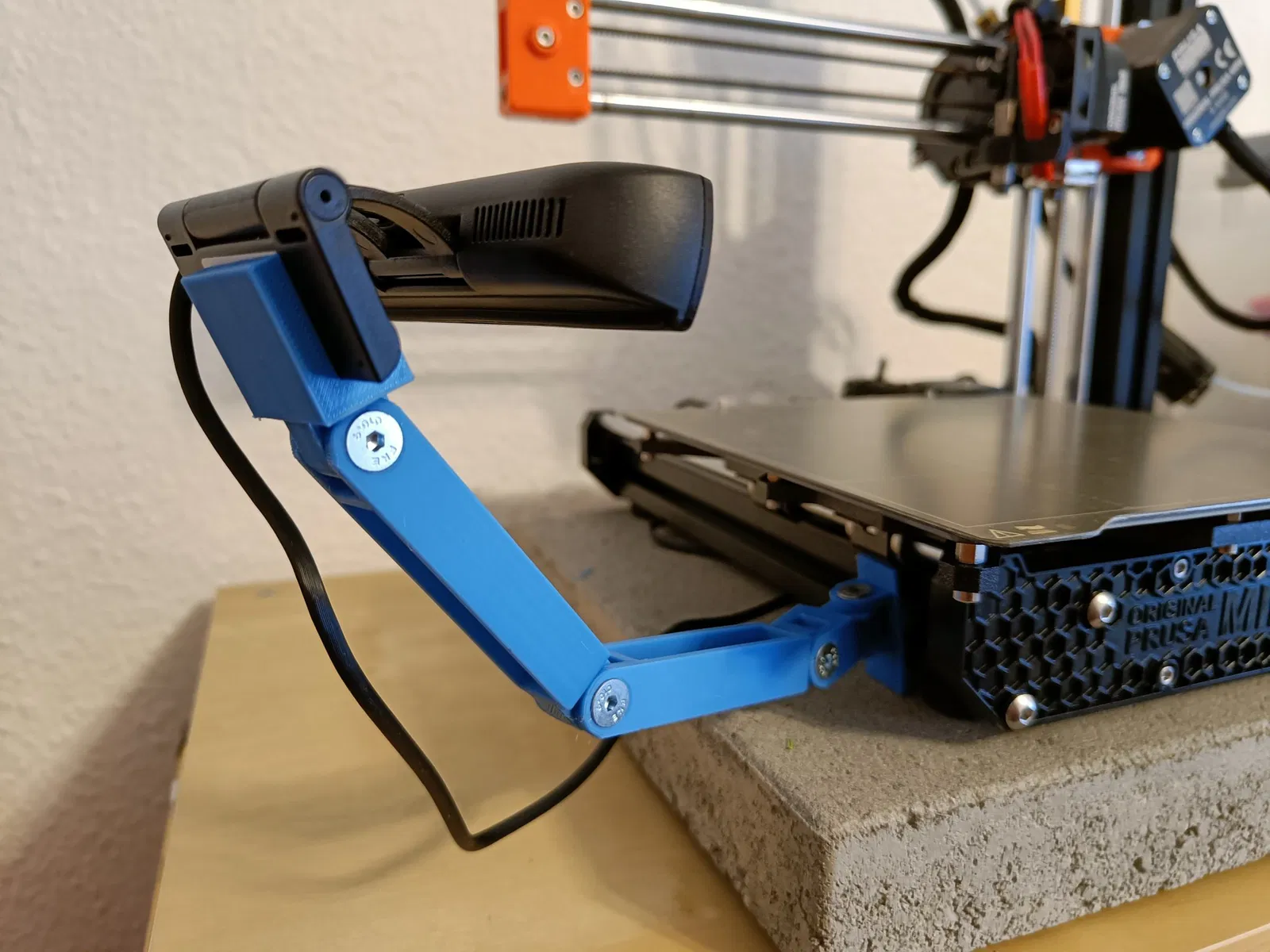 Tôi đã tạo ra giá đỡ camera của riêng mình và muốn chia sẻ tệp scad của mình. Thiết kế của tôi dành cho các vít M5x20 với đai ốc. Trong trường hợp bạn cần kích thước vít/đai ốc khác, chỉ cần điều chỉnh các giá trị trong tệp .scad GỢI Ý: Phần kết nối giữa cánh tay và máy in sẽ bị cong sau một thời gian hoặc khi camera quá nặng. HexDriver đã tạo ra một phiên bản remix để khắc phục vấn đề này: < Ngoài ra, HexDriver cần một phần cố định camera khác, vì vậy nếu phần cố định camera của tôi không phù hợp với camera của bạn, có thể phần từ phiên bản remix sẽ phù hợp hơn với bạn.