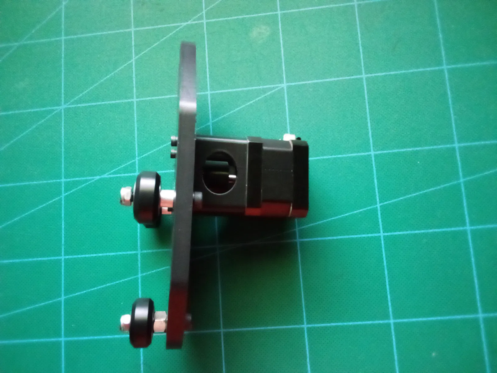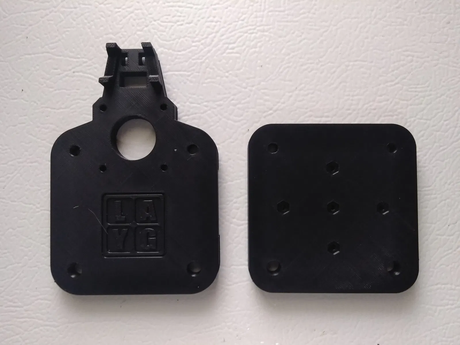 Một tấm được thiết kế để gắn motor bước Nema 17, tấm còn lại dùng cho vòng bi mặt bích f625zz 16 mm.