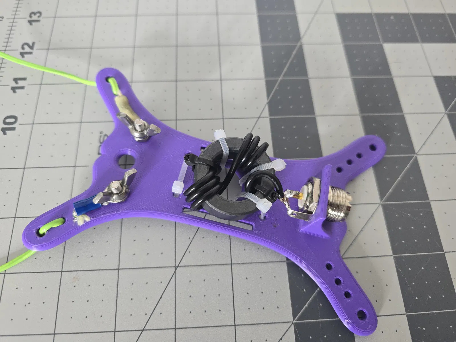 Nó sử dụng ren M5x0.8 để giúp các trụ dipole được cố định chắc chắn hơn vào thân cuộn. Có sẵn chỗ cho đầu nối SO239 và không gian để lắp Toroid T140-43 hoặc loại nhỏ hơn làm choke.