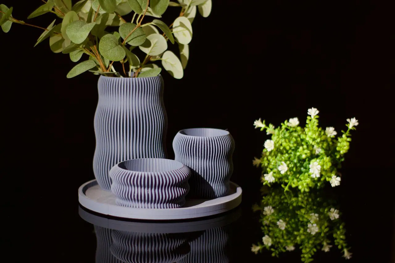 Bộ sưu tập 3 chiếc bình độc quyền này mang vẻ đẹp hiện đại và tinh tế. Mỗi chiếc bình là một tác phẩm nghệ thuật với kích thước riêng biệt tạo nên nét cá tính độc đáo: Lines nhỏ (D10cm x H5cm), Lines trung (D8cm x H8cm) và Lines cao (D9cm x H15cm). Hãy tô điểm không gian sống của bạn thêm phần hiện đại với bộ sản phẩm độc đáo này.