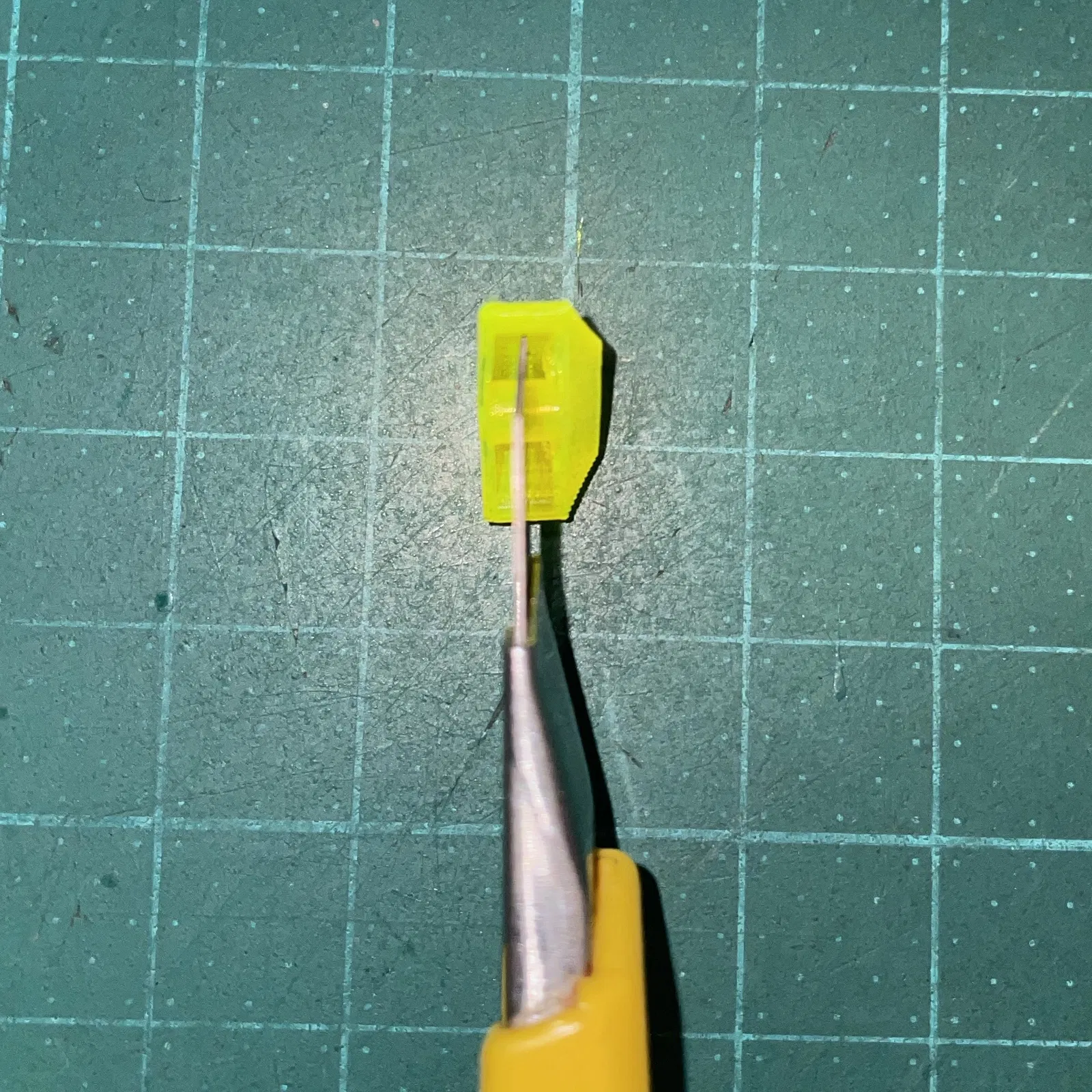 Được in bằng vòi phun 0.4mm và chất liệu TPU 95 A Shore, chiều cao lớp in 0.15mm. Giá đỡ camera cho phép thay đổi 4 vị trí gắn khác nhau tùy vào lỗ và hướng lắp, giúp điều chỉnh tiến hoặc lùi thêm 1mm so với linh kiện TPU đi kèm trong bộ khung. Đế chân nên in với 0% infill để đạt trọng lượng nhẹ nhất và tăng khả năng giảm chấn. Thành phẩm của mình chỉ nặng 0.9gram/4 cái, nhẹ hơn nhiều so với linh kiện gốc. Hãy dùng dao sắc cắt đôi trụ ở giữa. Để gắn đế chân, bạn bóp nhẹ hai bên rồi đẩy vào đầu cánh tay của drone. Nếu cần, hãy dùng tua vít dẹt hoặc vật tương tự để nắn hai mấu vào lỗ trên cánh tay. Giá đỡ còi (buzzer) được thiết kế cho loại buzzer chủ động đường kính 9mm và chiều cao khoảng 4.2mm. Giá đỡ anten cần được cắt mở phía trên bằng dao sắc để luồn dây anten vào. Đối với đầu chuyển XT30, mình dùng một giọt keo dán nhanh để cố định chắc chắn khi rút pin. Giá đỡ buzzer, đầu chuyển XT30 và giá đỡ anten có thể vừa với các khung khác sử dụng trụ 4mm lục giác với khoảng cách tâm 14mm.