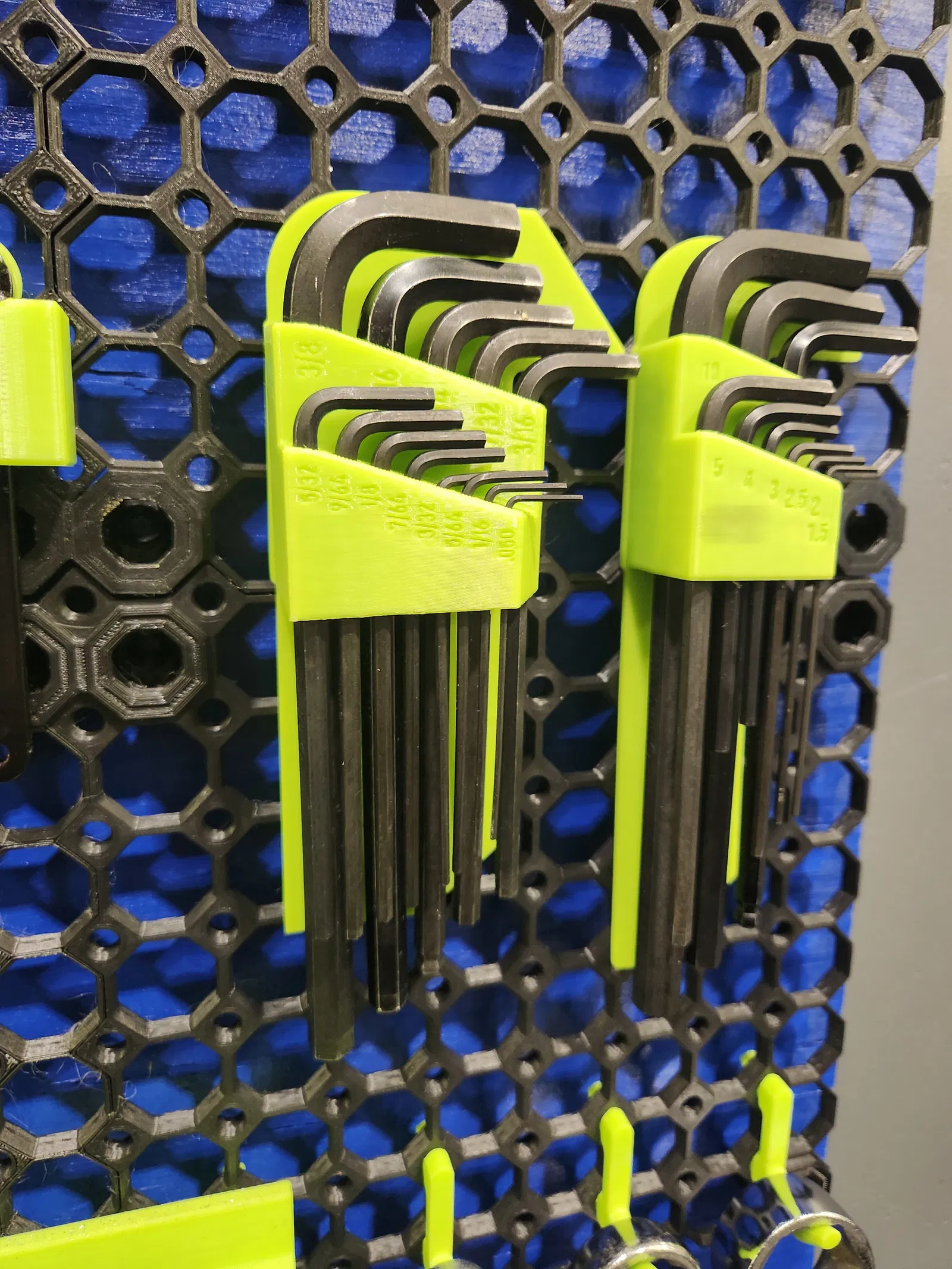 Đây là giá đỡ lục giác (Allen key) chuẩn SAE đơn giản dành cho hệ thống Multiboard. Các kích thước đi kèm: 3/8, 5/16, 1/4, 7/32, 3/16, 5/32, 9/64, 1/8, 7/64, 3/32, 5/64, 1/16, .050. Sản phẩm có hai phiên bản: một loại có chữ in chìm (debossed) và một loại có chữ nổi (embossed). Giá đỡ gắn vào bảng thông qua , giúp bạn có thể tháo rời khỏi Multiboard một cách nhanh chóng để mang theo khi cần.