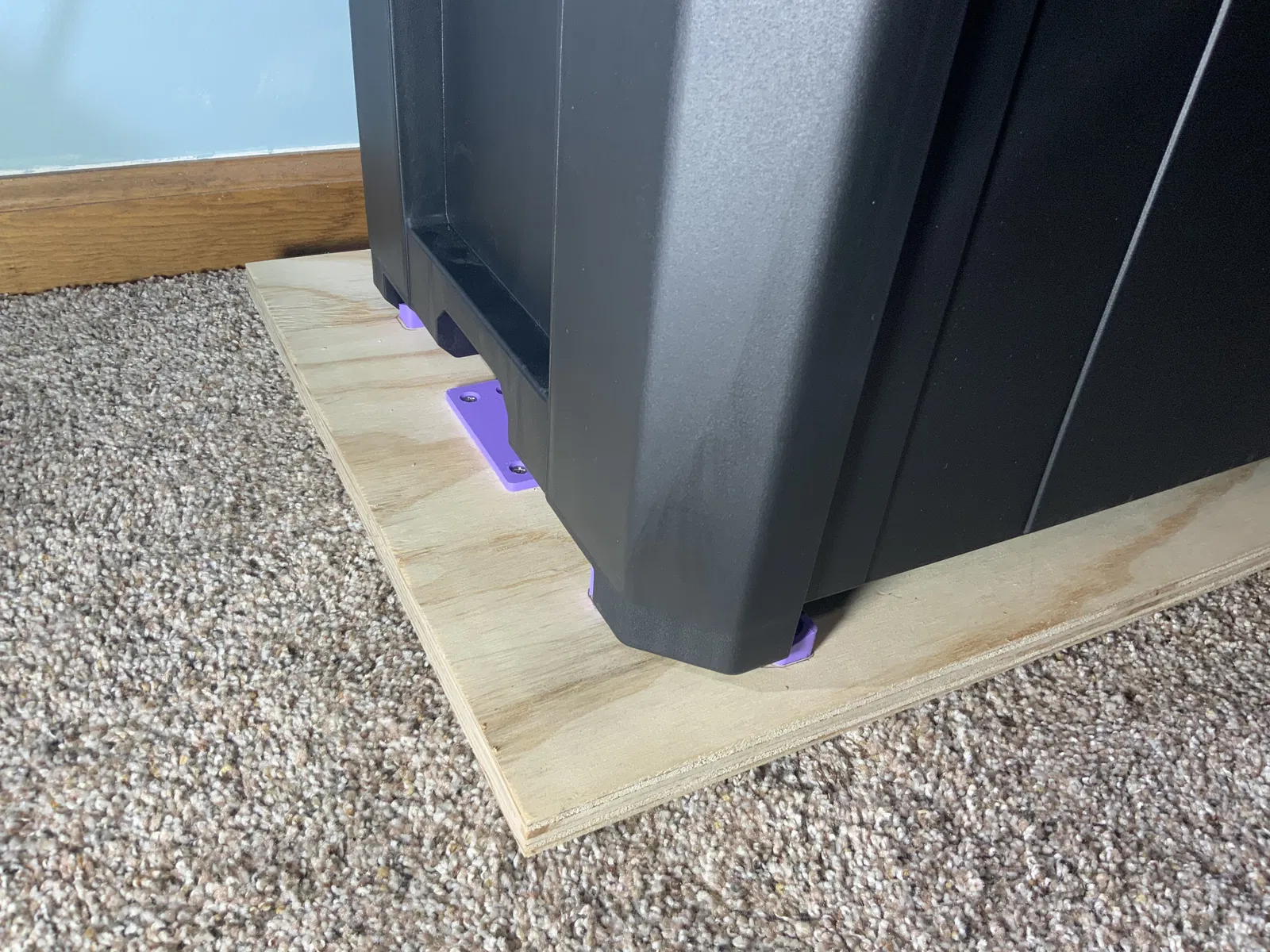 Ngoài ra, mình đã thiết kế một chiếc kẹp có thể khóa chặt vào các rãnh gắn có sẵn dưới đáy thùng. Những chiếc kẹp này cung cấp một phương thức cố định không cần dụng cụ, giúp bạn gắn thùng vào các đế tùy chỉnh, xe đẩy hoặc các bề mặt khác một cách nhanh chóng và chắc chắn.