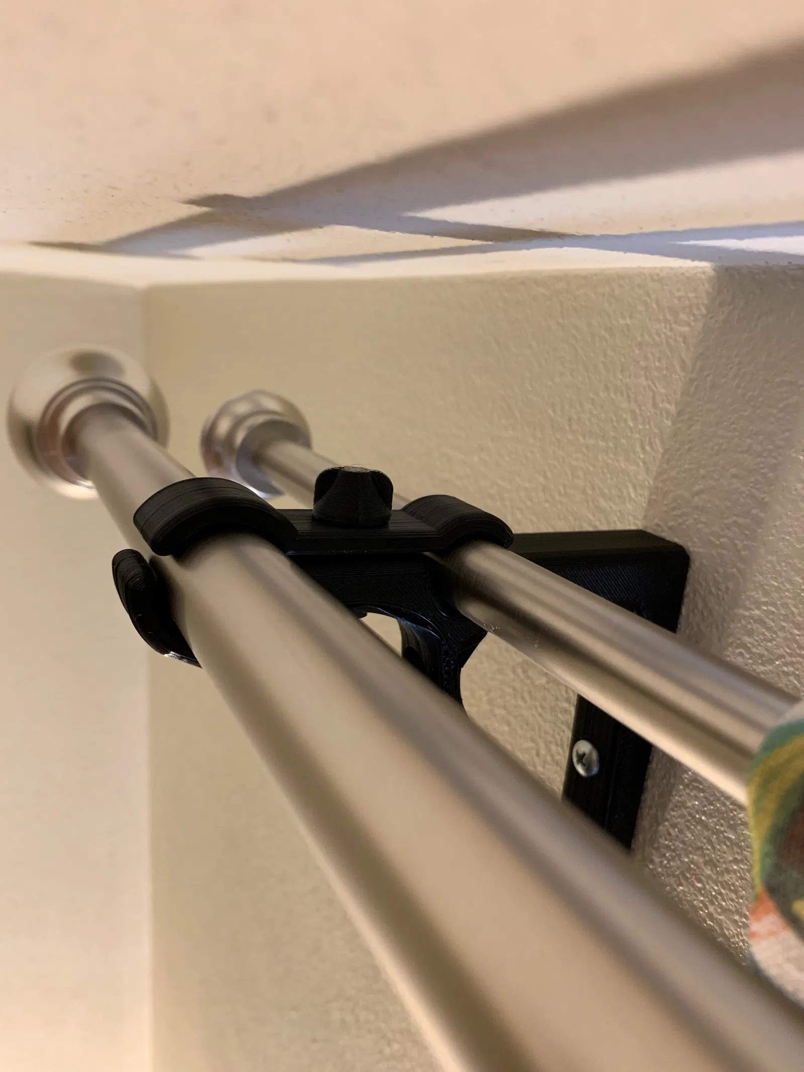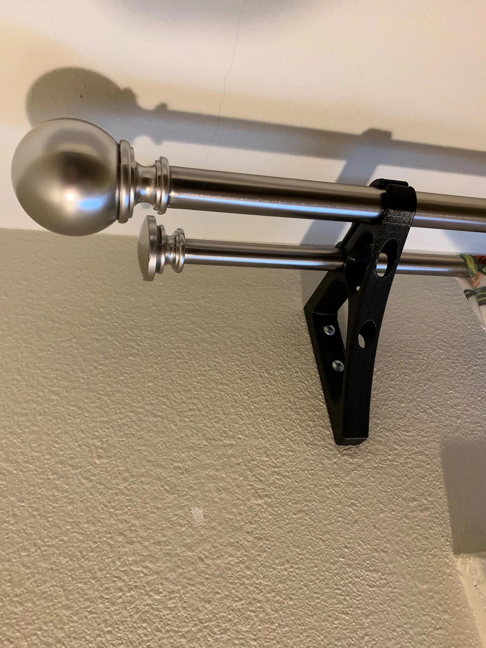 Mình mua một bộ thanh treo rèm đôi, nhưng cái bát kim loại đi kèm rẻ tiền quá nên bị cong gần như ngay lập tức. Sau vài lần chỉnh sửa trên Fusion 360, đây là thiết kế thay thế cực kỳ chắc chắn của mình! Nó có tính năng kẹp và các lỗ xuyên qua giúp việc lắp đặt dễ dàng hơn. Các lỗ này được thiết kế đủ rộng để vừa với đầu vặn vít thông thường (mình đang dùng đầu vặn vít của DeWalt).