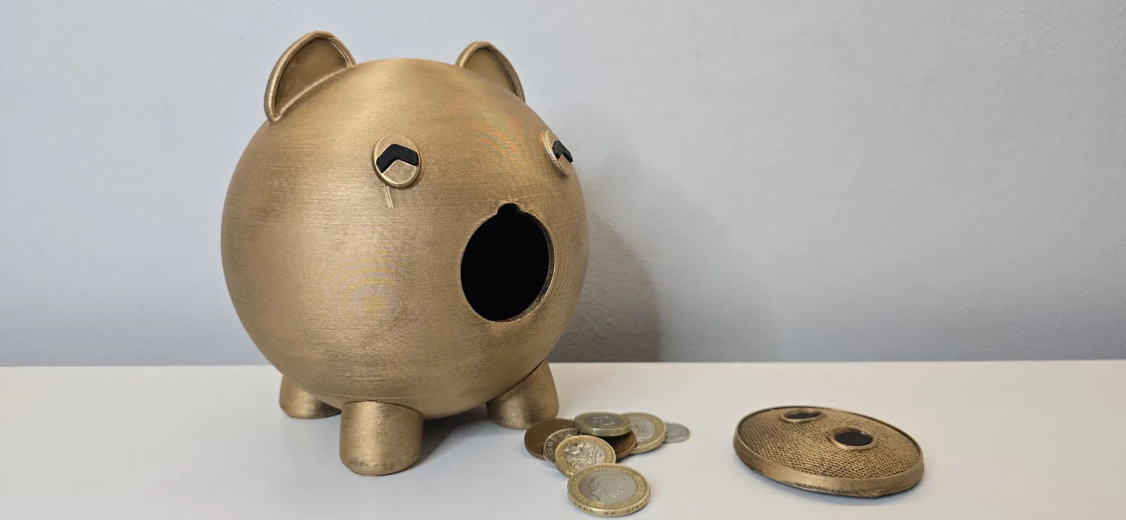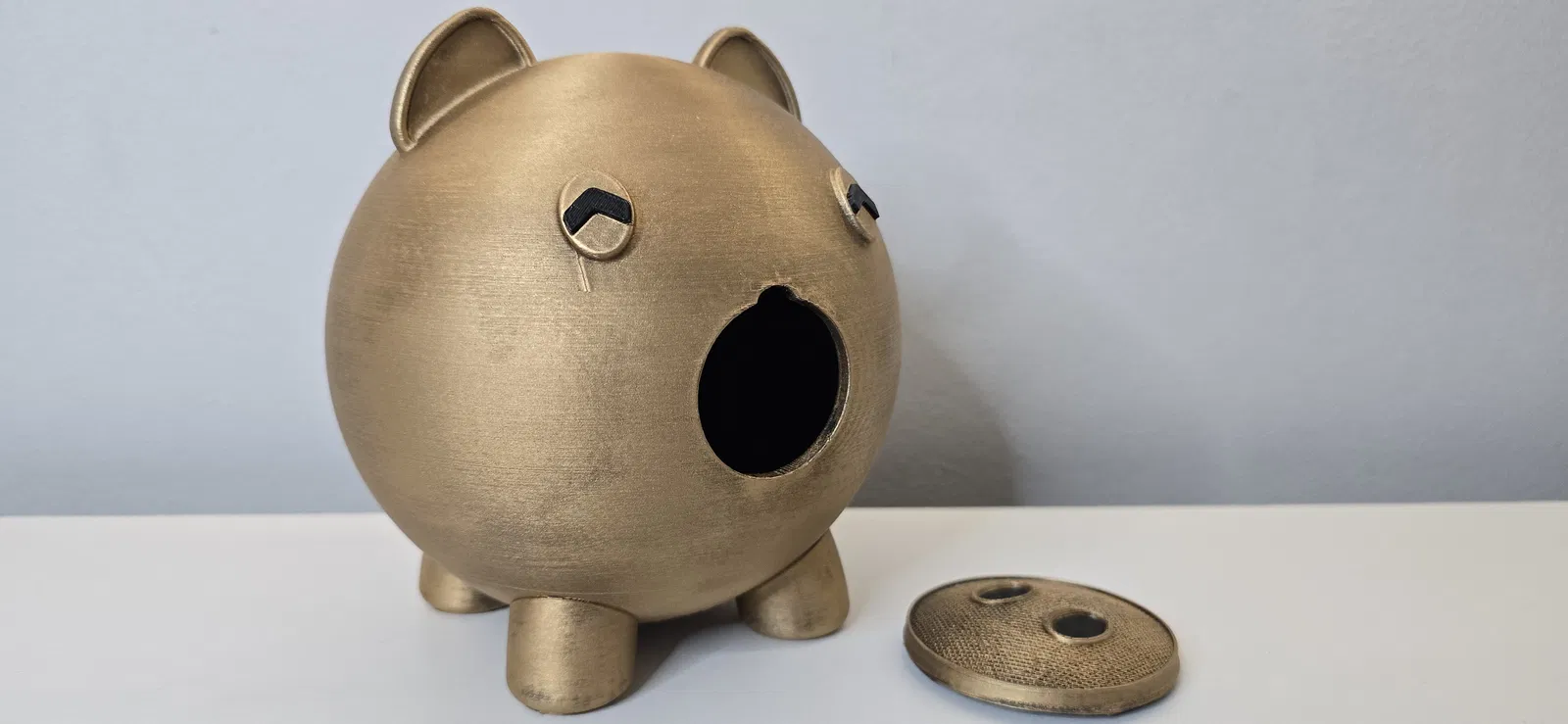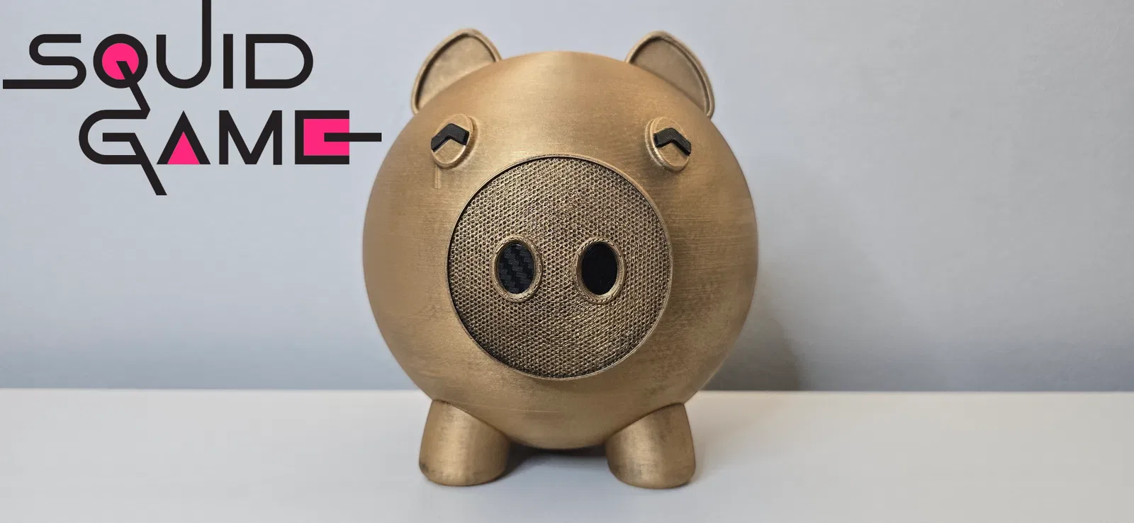 Mô hình heo vàng biểu tượng trong phần 2 của phim Squid Game. Thiết kế rỗng bên trong có thể dùng làm ống tiết kiệm. Sản phẩm bao gồm các chi tiết rời như mắt và mũi, hỗ trợ in FDM với cấu trúc tree support.