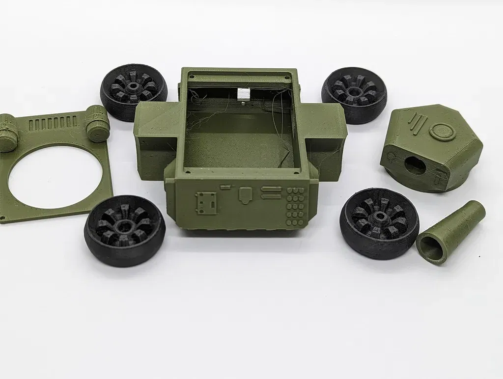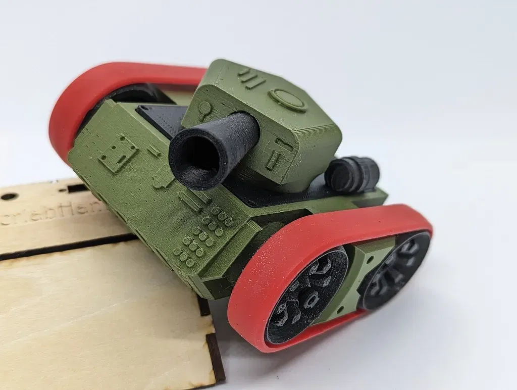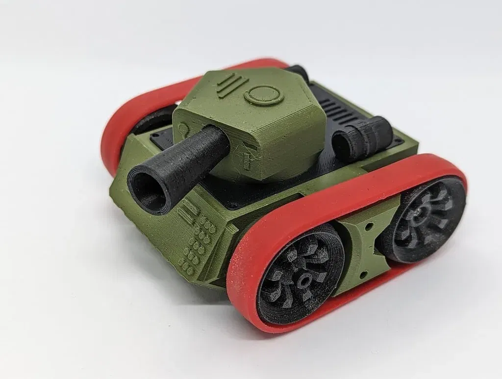 Phiên bản xe tăng của robot đẩy nhỏ, được thiết kế cho hai động cơ servo SG90 và một vi điều khiển ESP8266. Tệp zip ( ) bao gồm firmware, có thể dễ dàng tải lên bằng Arduino IDE. Xem thêm: