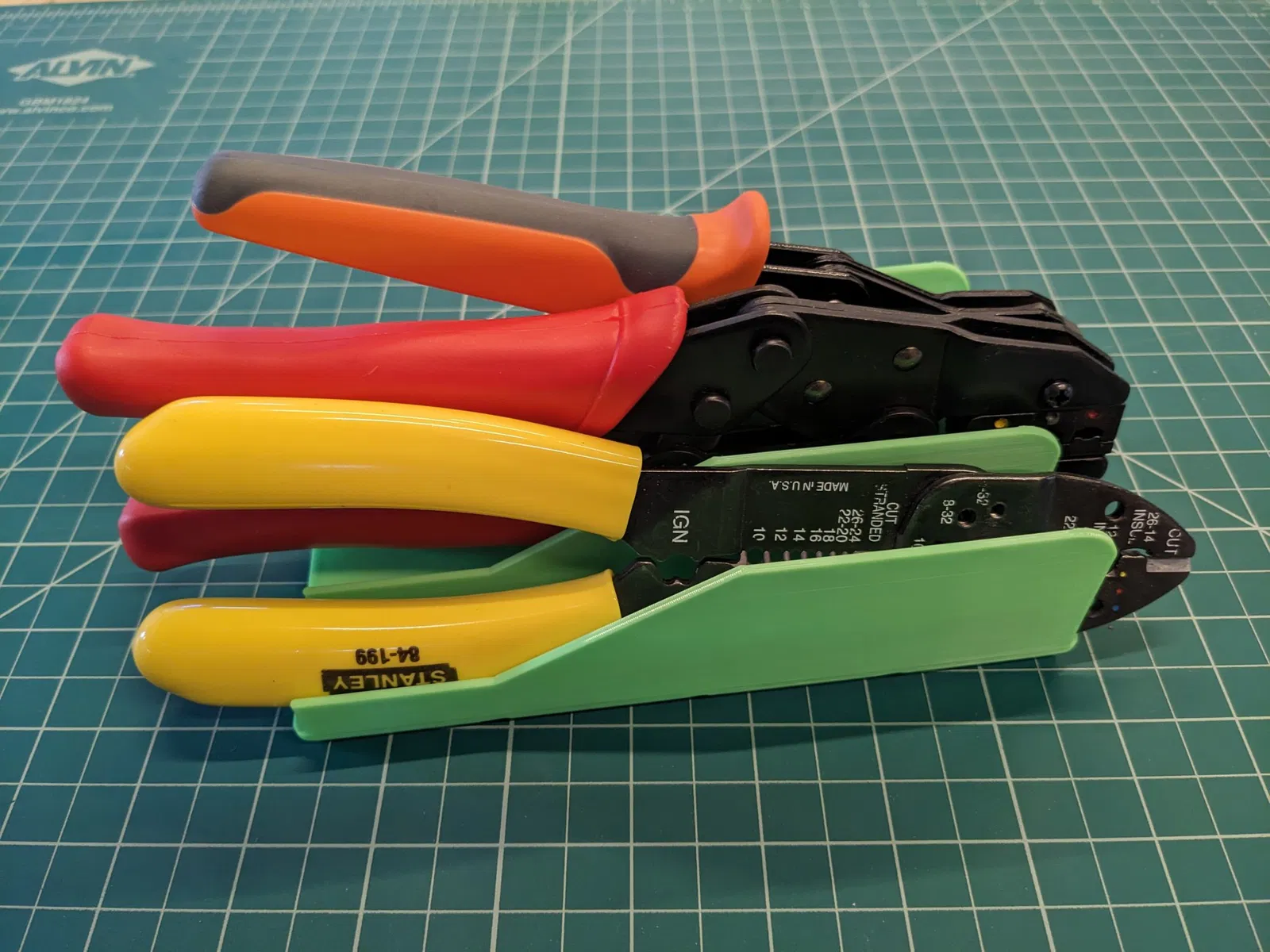 Giá đỡ kìm ba tương thích với Gridfinity cho các công cụ rộng hơn không vừa với giá đỡ kìm Gridfinity tiêu chuẩn. Các biến thể bao gồm với các lượng hỗ trợ dọc khác nhau cho các công cụ (như một tỷ lệ của tổng chiều dài). Hoạt động cho bất kỳ công cụ hẹp nào (cờ lê, kìm cắt dây, v.v.). Các lỗ ở mặt dưới đã được sửa đổi để không cần hỗ trợ khi in.