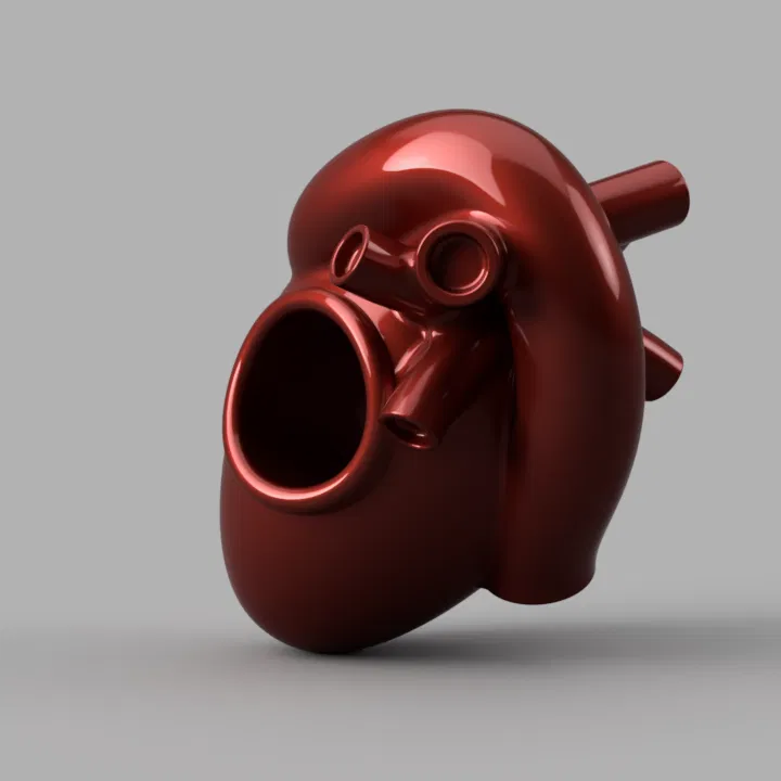 Mẫu này được dựa trên cơ sở dữ liệu CT mở lodopab-ct. Để phục vụ cho việc nghiên cứu, mình đang cố gắng cải thiện dữ liệu CT bằng AI nhằm đạt kết quả mô hình hóa tốt hơn từ các bản quét CT có chất lượng thấp. Mình đã lấy mẫu CT cụ thể này, sử dụng Nvidia MONAI trong 3Dslicer để tự động phân đoạn (autosegment) trái tim. Sau đó, mình xuất file STL, điều chỉnh một chút các thành phần để đảm bảo cấu trúc đủ chắc chắn và đắp thêm các hình khối đơn giản để làm tối giản hóa thiết kế. Mình đã chỉnh kích thước thành dạng hạt charm và tạo một lỗ xỏ. Lưu ý: mẫu này đã được phóng to tỉ lệ x10.