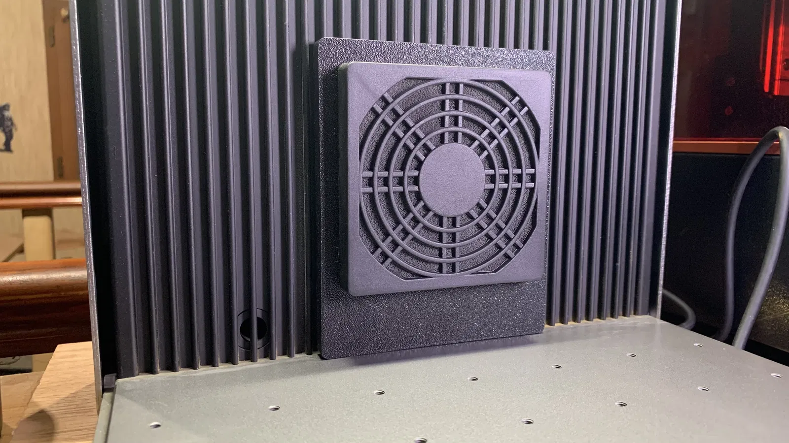 Máy laser xTool F1 Ultra có thể thực hiện các thao tác như dập nổi trên kim loại và đá, những công việc này thường tạo ra rất nhiều bụi. Bộ tiền lọc (pre-filter) này giúp ngăn chặn bụi bẩn bám vào quạt hút, giúp việc vệ sinh trở nên dễ dàng hơn nhiều so với việc phải lau chùi trực tiếp trên quạt. Phần giá đỡ được thiết kế để gắn trực tiếp vào lưới thông gió ở mặt sau, ngay vị trí quạt zin và có thể tháo lắp cực kỳ thuận tiện.