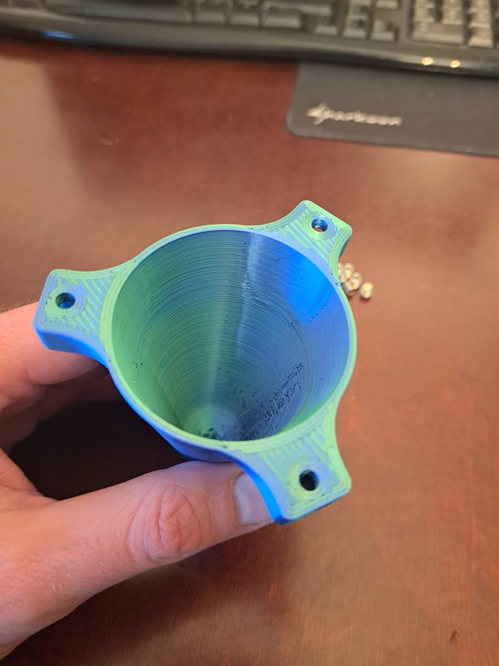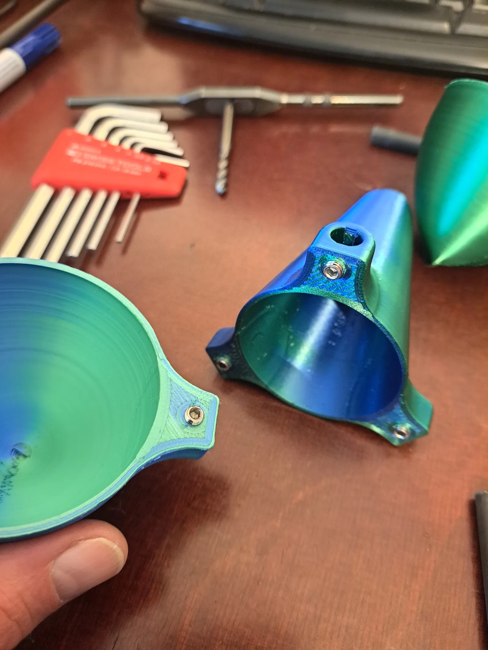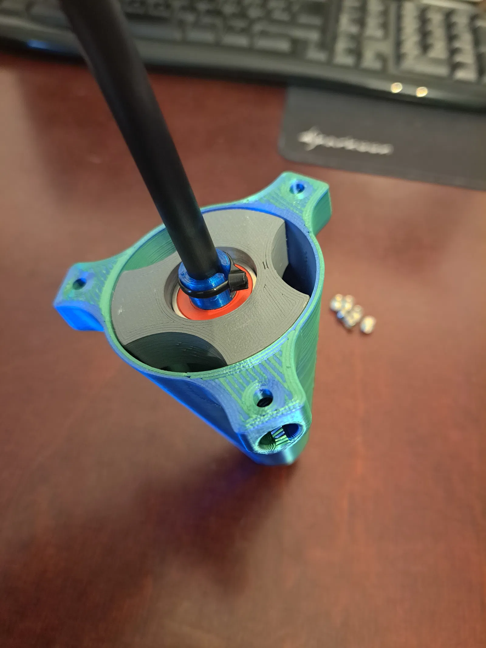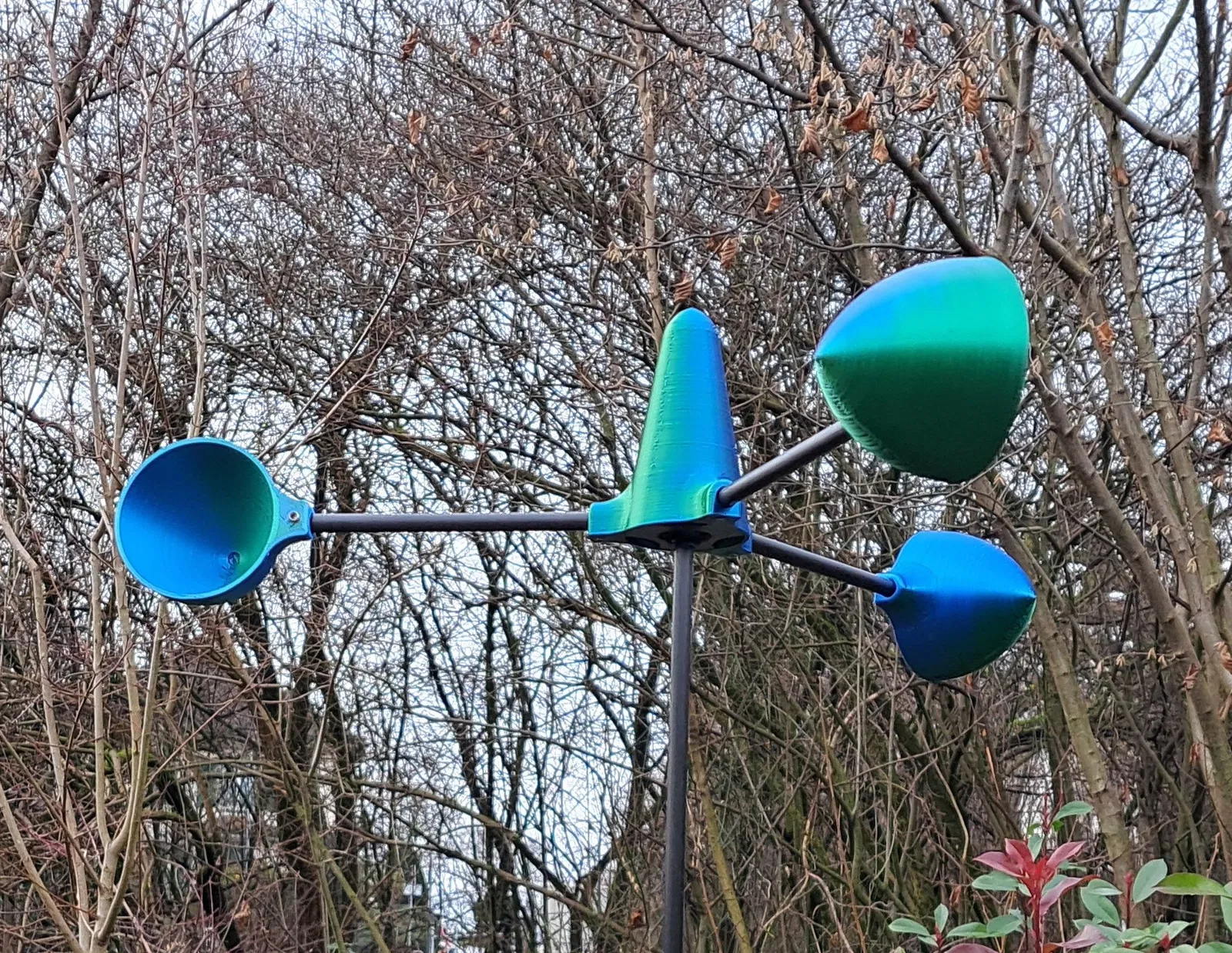 Mô hình cối xay gió (Windmill, Windrad) dùng cho không gian ngoài trời - vận hành tốt ở cả tốc độ gió thấp và cao. Thiết kế bao gồm phần ổ trục và thân cối xay riêng biệt, được lắp ghép chồng lên nhau qua một khớp hình nón 10°. Cách này giúp niêm phong, chống chịu thời tiết cho bộ phận ổ trục cực kỳ đơn giản và hiệu quả. Mẫu của mình đã hoạt động hoàn hảo hơn 2 năm nay (tính đến tháng 3/2025), trải qua đủ nắng, mưa, tuyết và cả cái lạnh -10°C mà không gặp vấn đề gì. Những vật liệu bạn cần chuẩn bị ngoài các bộ phận in 3D: 2x Vòng bi ván trượt (Skateboard Bearings) với đường kính ngoài 22mm, đường kính trong 8mm, độ dày 7mm. Để giảm ma sát, hãy tháo các vòng đệm cao su bên trong ra. Đường kính lỗ lắp (Pressfit) trong file STL đã được thiết lập 22.2mm, mình dùng kích thước này rất ổn. 3x Thanh trục đường kính 8mm (mình dùng thanh carbon), chiều dài 8-10cm cho cánh quạt. 1x Thanh trục đường kính 8mm cho phần trụ đứng, độ dài tùy theo ý muốn của bạn. 6x Vít M5 (trong ví dụ màu xanh mình dùng vít M5x5 không đầu) hoặc dùng keo để cố định các thanh trục chắc chắn hơn. Bạn nên dùng thêm tính năng Arc Welder nếu dùng máy in đời cũ, vì các model này chủ yếu là hình tròn, Gcode sẽ nhẹ hơn gấp 6 lần và giúp máy chạy mượt, không bị khựng. Nếu không dùng Arc Welder, con máy 3DGence One của mình đã gặp khó khăn khi in. Để có kết quả tốt nhất như mình, hãy cài đặt độ rộng đường in (line width) từ 0.6-0.7mm và chiều cao lớp in (layer thickness) 0.3mm. Với cách này, mỗi phần chính chỉ mất chưa đầy 1.5 tiếng để in xong. Chúc các bạn vui vẻ!