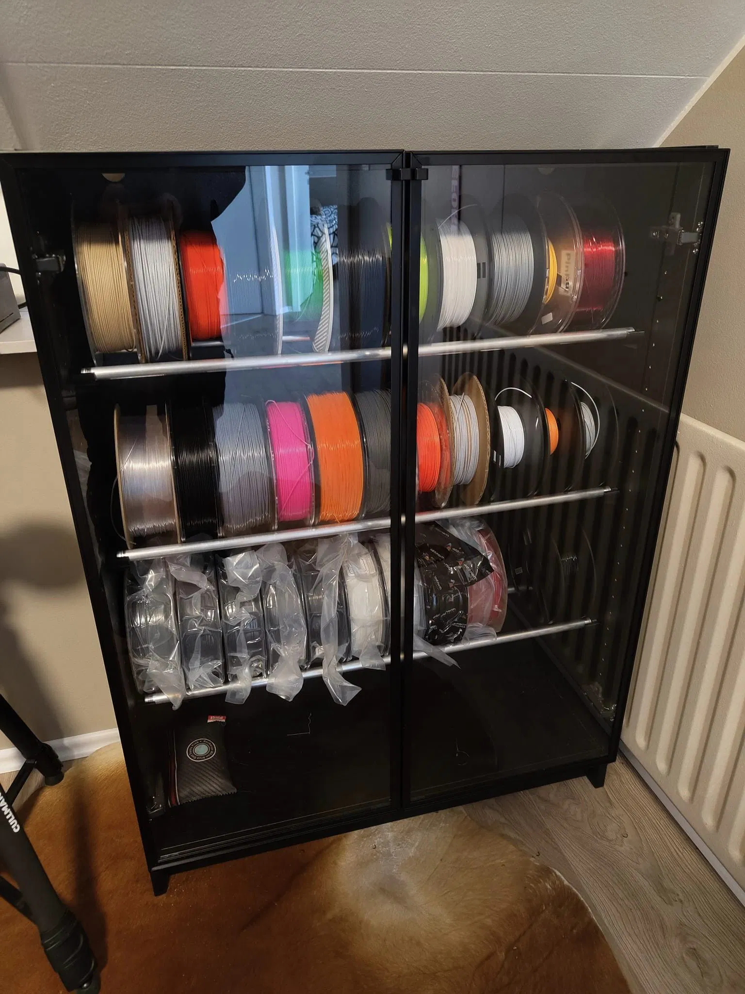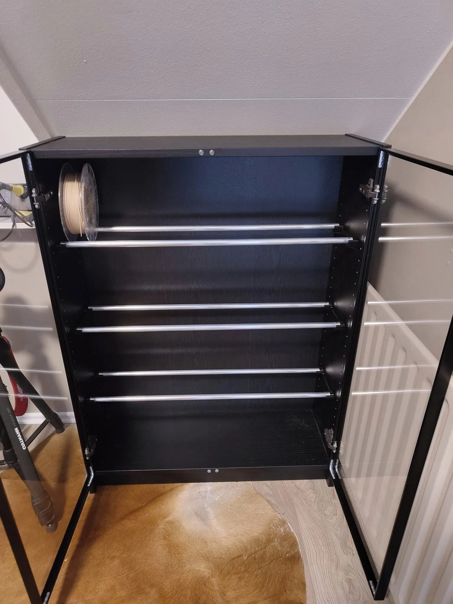 • Tủ sử dụng tất nhiên là hệ tủ Billy, mình chọn kết hợp với cánh kính Högbo.