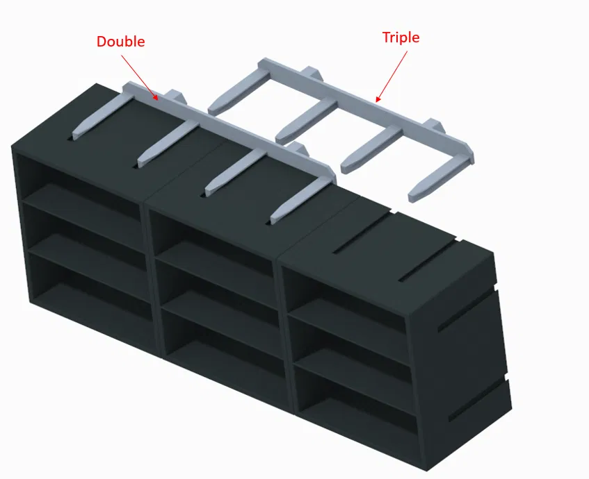 Đây là mẫu chốt gài chuyên dụng cho miếng chèn rỗng của hệ thống tường Honeycomb (HSW). Bạn cần in kèm miếng chèn đã tùy chỉnh để lắp đặt. Bản cập nhật mới nhất đã tối ưu kích thước cho chốt đôi và thêm chốt dành cho ba ngăn kéo.