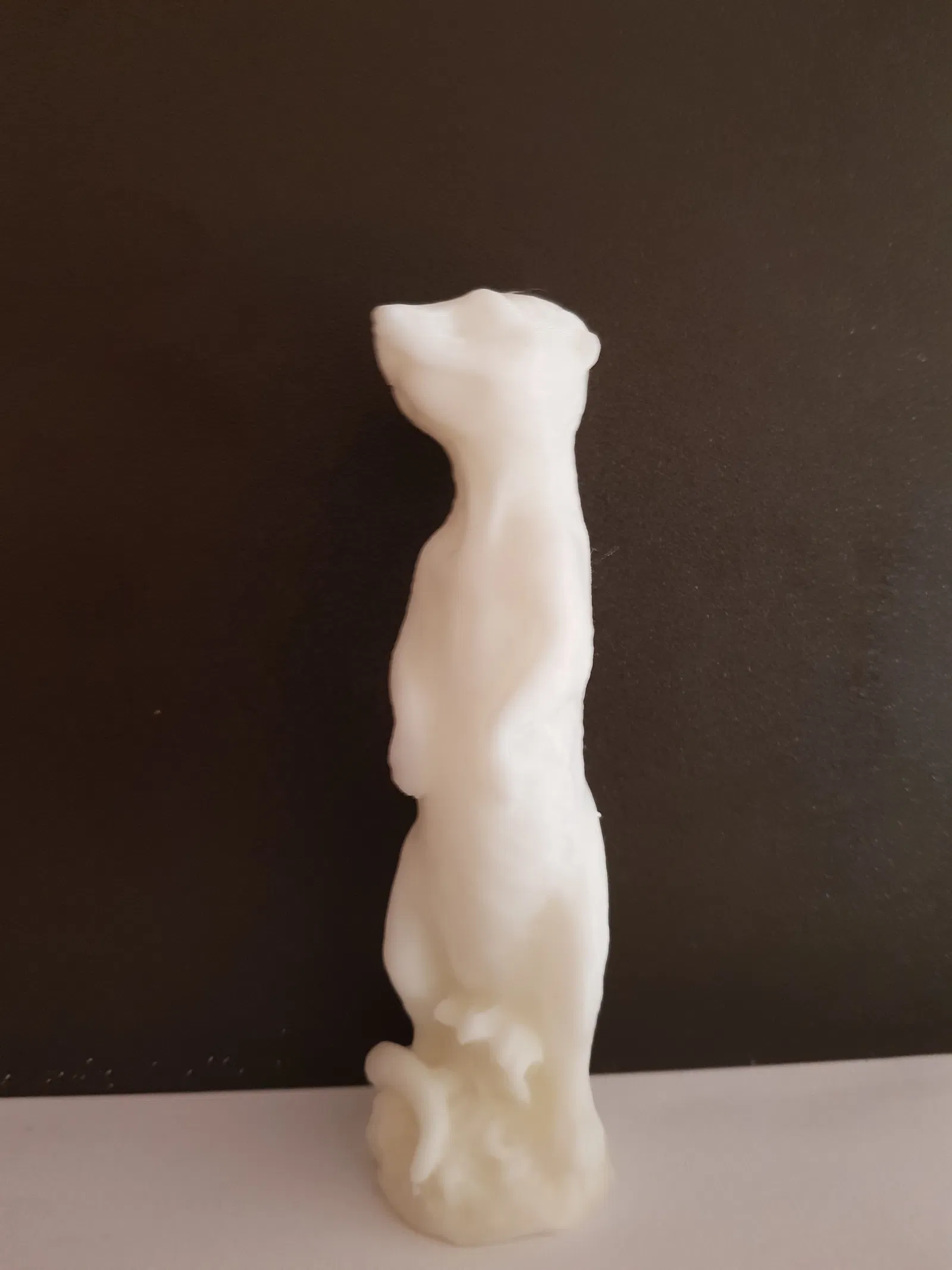 Mô hình Erdmännchen (Chồn Meerkat) cần được in với thiết lập hỗ trợ (supports) ở khắp mọi nơi. Khi bạn tăng tỉ lệ kích thước càng lớn thì các đường nét của mô hình sẽ càng chi tiết và sắc sảo hơn. Bản in thử (xem ảnh) có chiều cao là 10 cm.