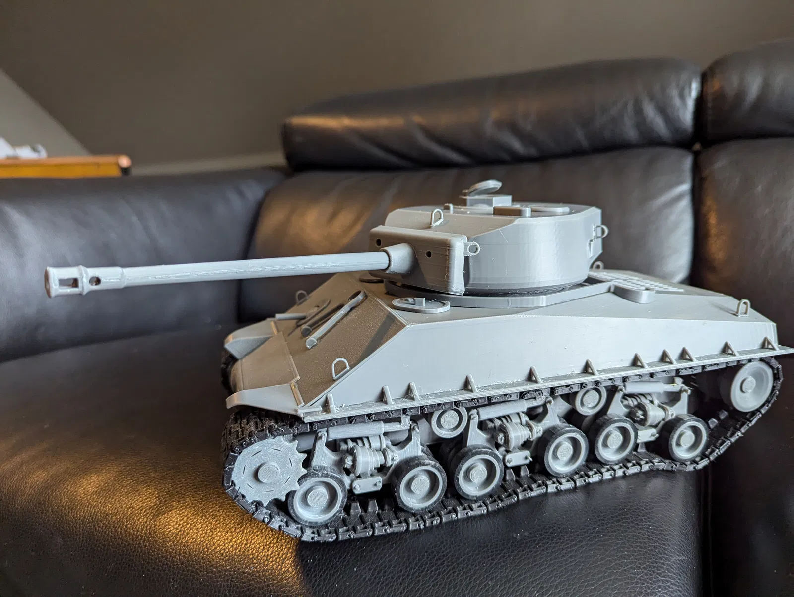 Đây là mẫu xe tăng Sherman tỷ lệ 1/20, được thiết kế để bạn gắn thêm động cơ và bộ điều khiển từ xa (RC). Mình đã cố gắng tạo hình theo kiểu các phiên bản tăng cường hỏa lực đời sau. Mục tiêu không phải là tạo ra một mô hình chuẩn lịch sử từng chi tiết, mà là một mẫu xe thú vị để lắp ráp, nhìn đẹp mắt và không khiến bạn phải chạy ra cửa hàng kim khí tìm mua thêm linh kiện để hoàn thiện.