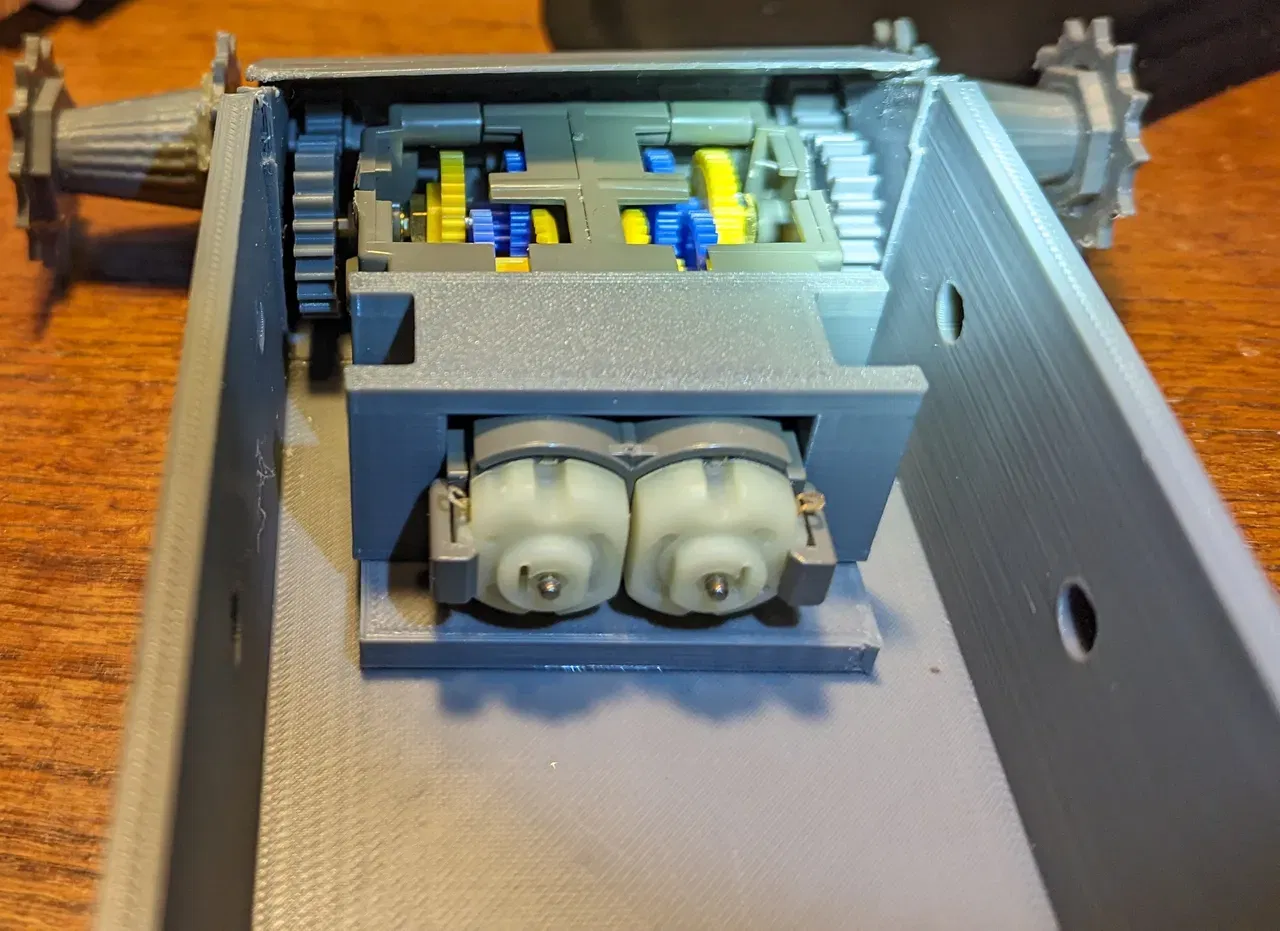 Mình dùng hộp số Tamiya 70168 theo gợi ý của một người bạn. Nó không quá mạnh nhưng đủ dùng nếu bạn làm sạch mô hình tốt. Hộp số cùng bộ điều khiển động cơ L298n chạy bằng ESP8266 là giải pháp tiết kiệm nhất nếu muốn có Wi-Fi. Mình có dùng mã mẫu để tạo trang web điều khiển ngay trên xe tăng. Bạn có thể yêu cầu mã nguồn nếu cần, nhưng tùy vào vi xử lý bạn dùng mà sẽ phải chỉnh sửa lại.