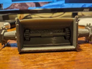 PLA+ phù hợp cho tất cả các bộ phận trừ lốp xe của các bánh chính, phần đó cần dùng TPU để co giãn qua bánh nhựa. Dù mô hình khá lớn nhưng các phần được thiết kế để vừa với máy in thông thường.