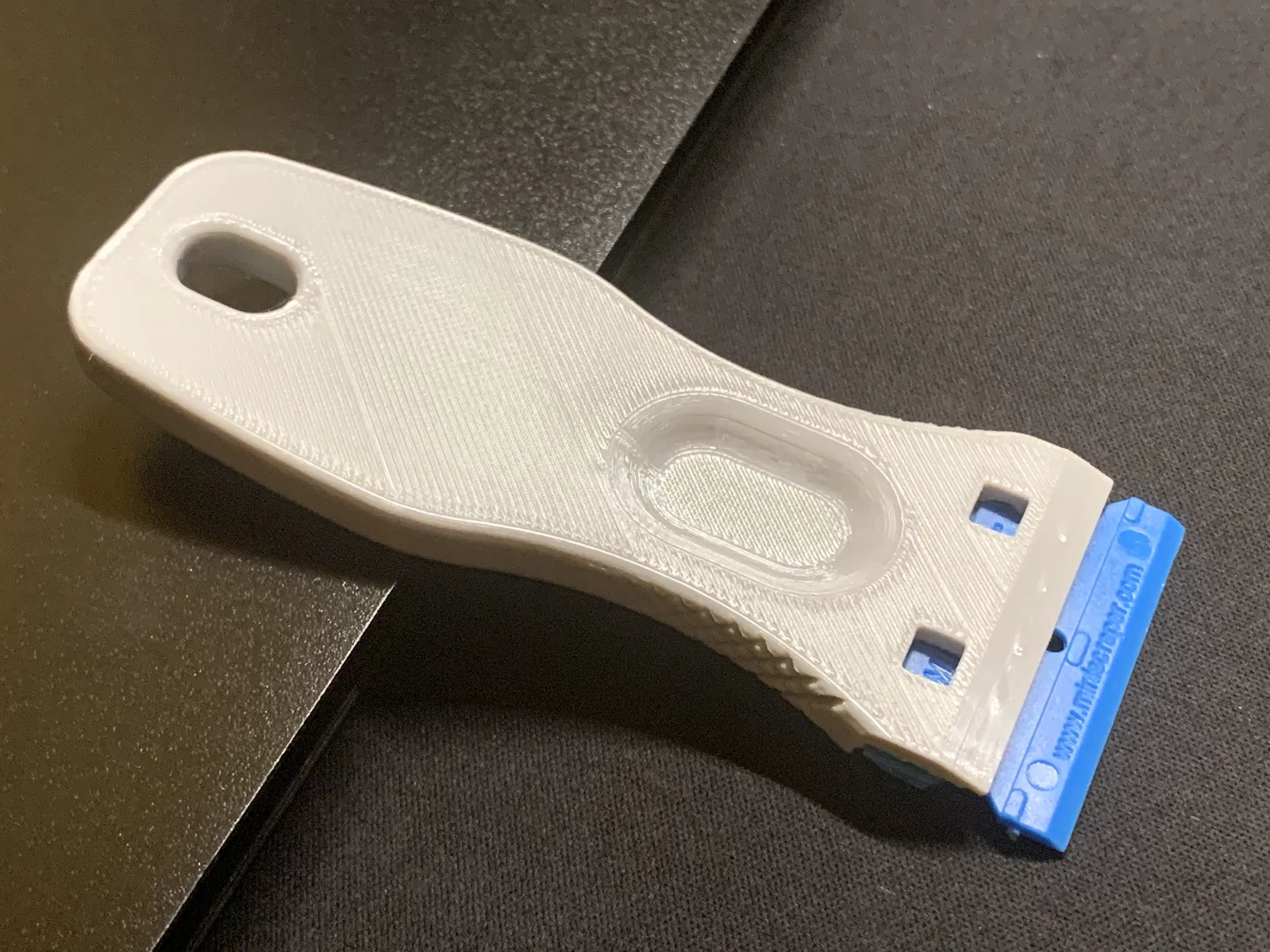 Bản remix của cán dao cạo Scraperlite giúp điều chỉnh lại hướng cầm cho thuận tay hơn. Thiết kế này giúp lưỡi dao được cố định chắc chắn, hỗ trợ lực tốt hơn khi cạo và giúp việc tháo support khi in 3D dễ dàng, sạch đẹp hơn so với các phiên bản gốc.