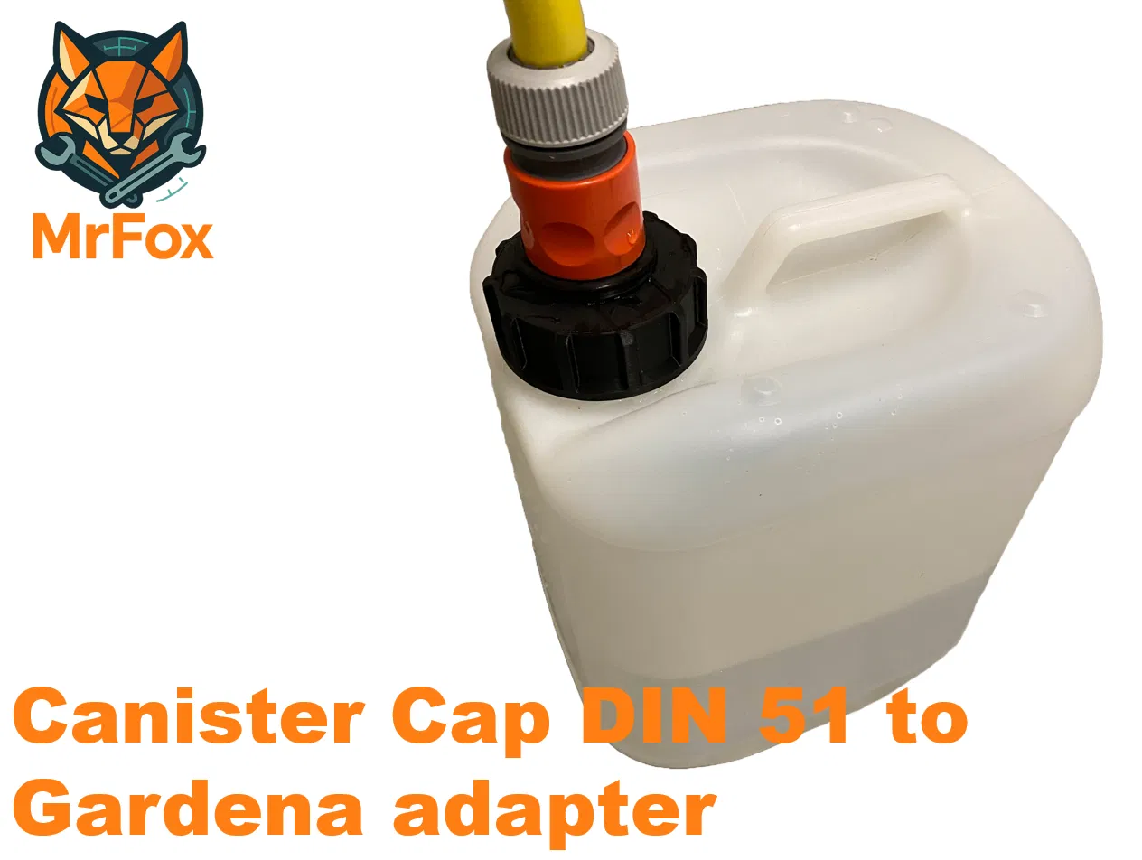 Chào mọi người, đây là bản remix từ hai thiết kế có sẵn. Mình đã kết hợp nắp bình can ren DIN 51 với đầu nối Gardena để việc bơm nước vào can bằng vòi trở nên dễ dàng hơn. Đầu nối Gardena này cần dùng thêm một vòng đệm cao su (O-ring) tiêu chuẩn nhé.