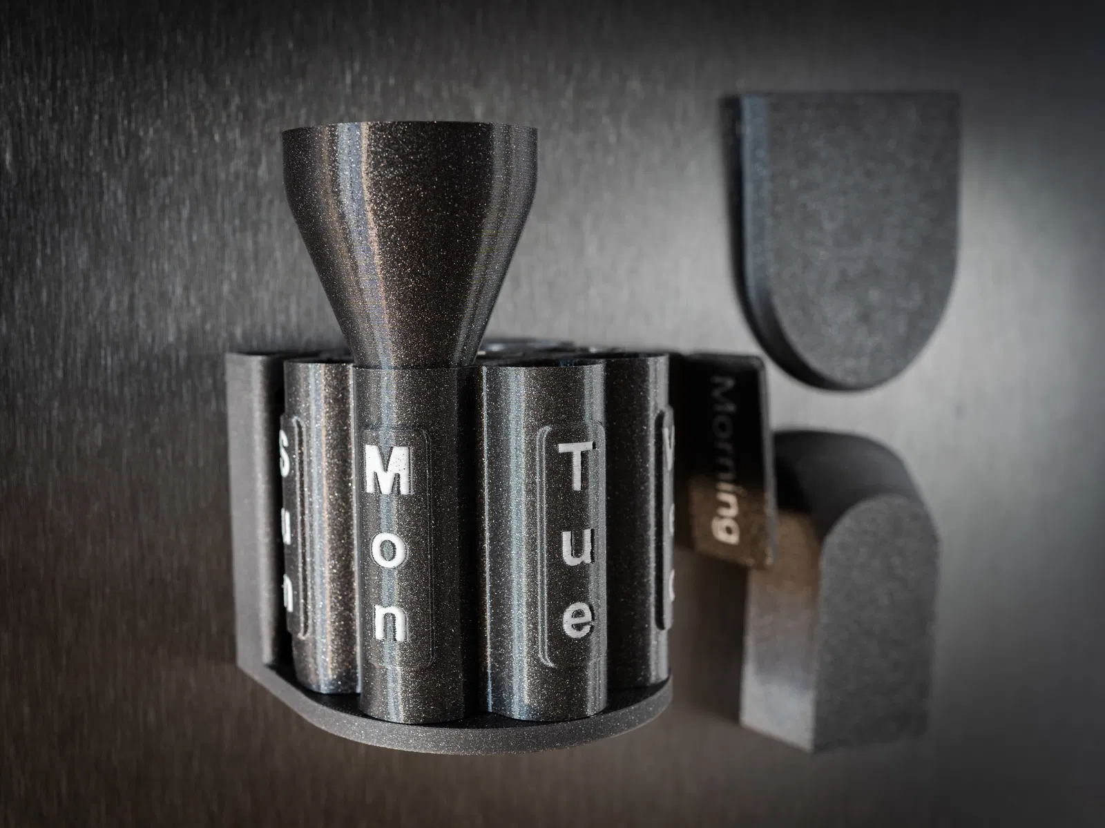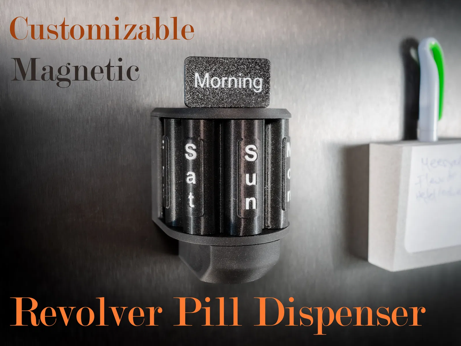 Hộp đựng thuốc in 3D với thiết kế ổ xoay revolver độc đáo giúp quản lý thuốc hàng ngày ngăn nắp. Đi kèm nhiều tùy chỉnh, nam châm tích hợp và khả năng cá nhân hóa tên người dùng cực kỳ tiện lợi.