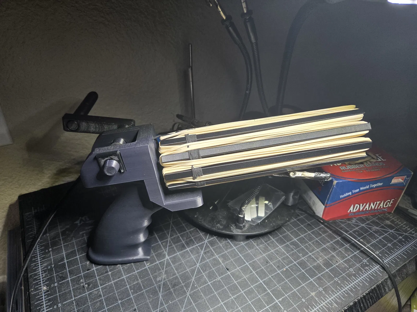 Mô hình súng Gatling bắn dây thun cực đỉnh, chứa được hơn 80 sợi dây và bắn xa hơn 6 mét. Thiết kế mô phỏng từ đồ chơi gỗ cổ điển, dễ dàng in 3D tại nhà bằng nhựa ASA và PA. Hãy cùng lắp ráp và trải nghiệm cảm giác bắn liên thanh cực vui!