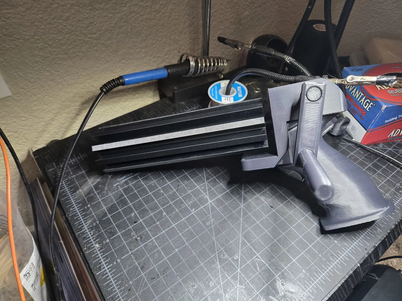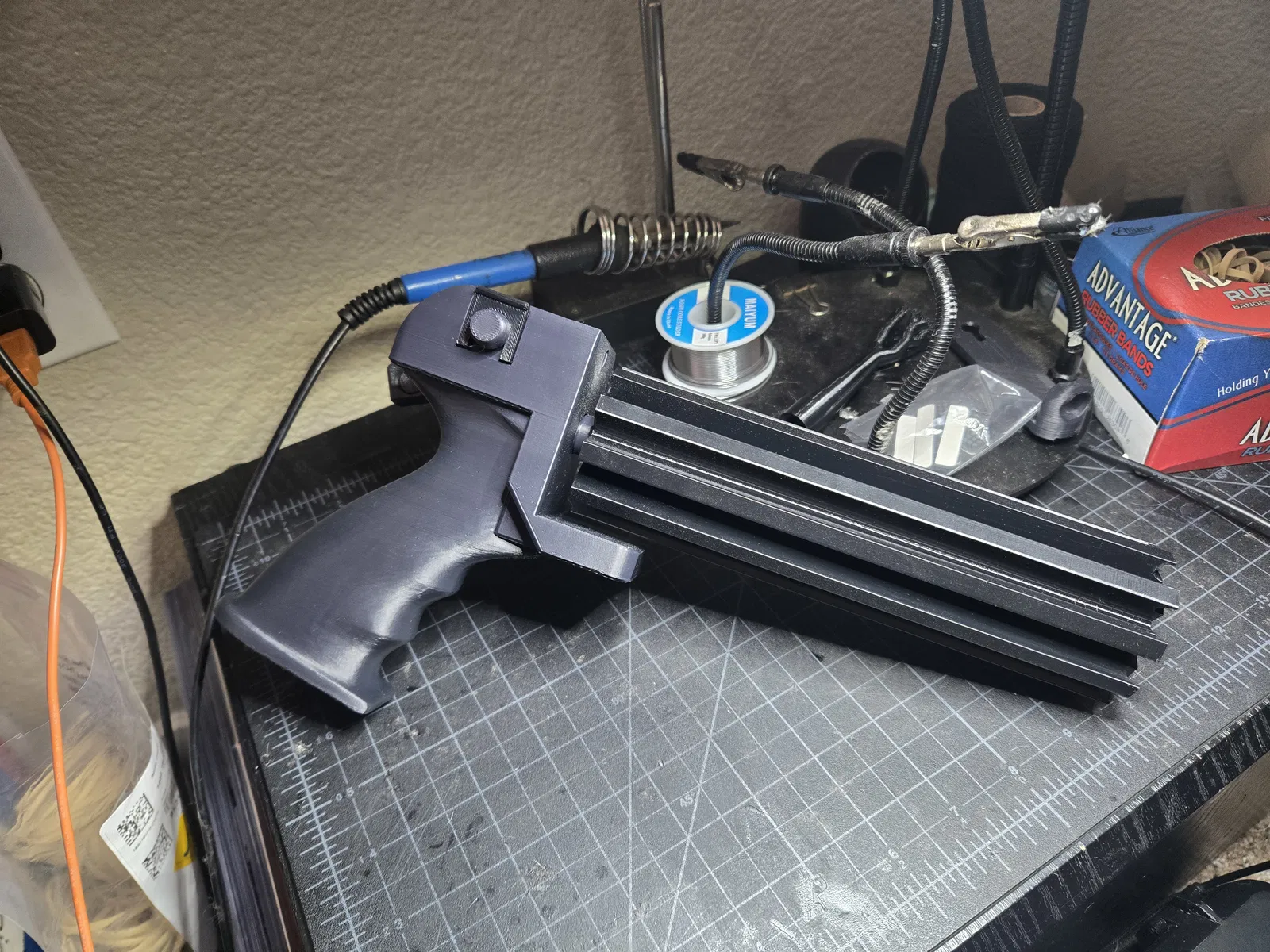 Phần thân, tay quay và các thanh trục được in bằng nhựa ASA, còn nòng súng và kẹp giữ thanh thân súng được in bằng nhựa PA.