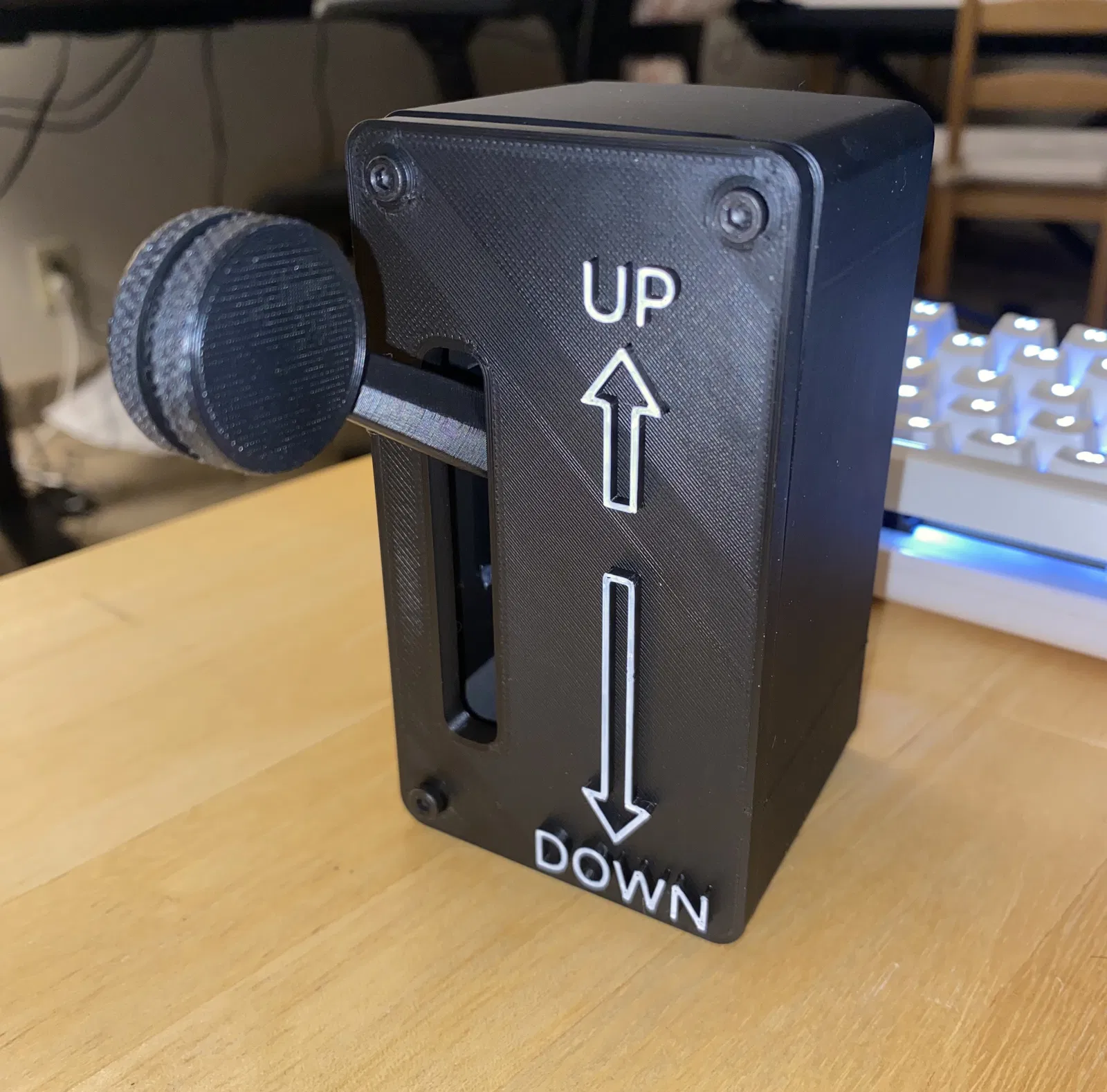 - Hoàn thiện: Bạn có thể sơn lại các chữ "UP" và "DOWN" bằng màu trắng tương phản để chiếc cần gạt trông nổi bật và chuyên nghiệp hơn trên bàn làm việc của mình.