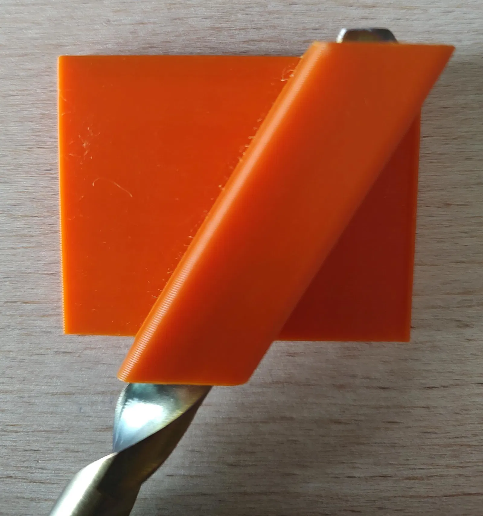 Mình cần một cái dưỡng canh góc để mài mấy mũi khoan lớn trên máy mài để bàn (bench grinder). Với dụng cụ này, mình có thể di chuyển mũi khoan trên mặt bàn máy mài qua lại và nghiêng nó quanh cạnh bàn. Hiện tại mình mới chỉ thêm các file cho góc mũi khoan 118 độ. Nên in bằng nhựa PLA có dùng brim, xoay 90 độ quanh trục X. Cái nêm có thể dán tạm thời (bằng băng dính hai mặt) bên dưới đế để giữ góc thứ cấp.