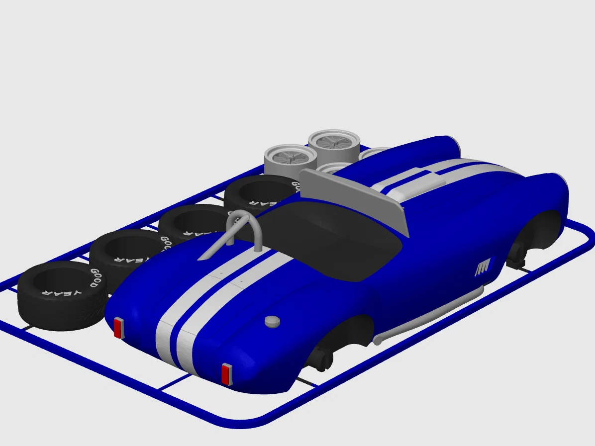 Tóm tắt Đây là mô hình xe Shelby AC Cobra 427 được thiết kế theo dạng kit card. Anh em có thể khám phá những chi tiết đặc trưng trên mẫu xe này. Sau khi in xong, mô hình có thể được lắp ráp dễ dàng nhờ các khớp nối tích hợp sẵn. Bánh xe có thể xoay được nhưng xe sẽ không lăn bánh được nhé.