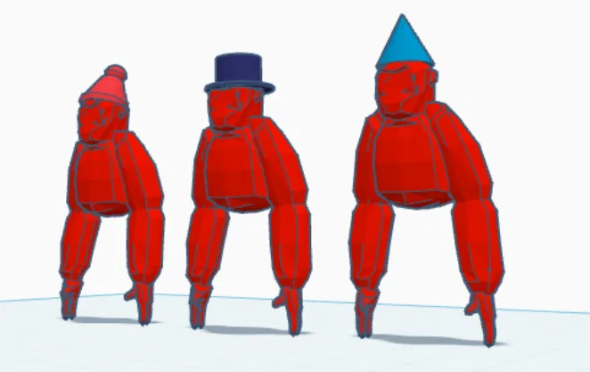 Bạn là một fan cứng của tựa game VR đình đám Gorilla Tag? Nếu vậy thì bộ sưu tập mô hình 3D này chắc chắn sẽ làm bạn phấn khích. Bộ sản phẩm bao gồm ba nhân vật khỉ đột (gorilla) với thiết kế đặc trưng, mang đậm phong cách vui nhộn và độc đáo của trò chơi. Điểm nhấn của các mô hình này chính là những chiếc mũ khác nhau, giúp tạo nên cá tính riêng biệt cho từng chú khỉ đột, từ những chiếc mũ chóp thanh lịch đến những chiếc mũ len hay mũ hình nón tinh nghịch.