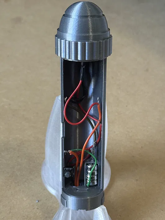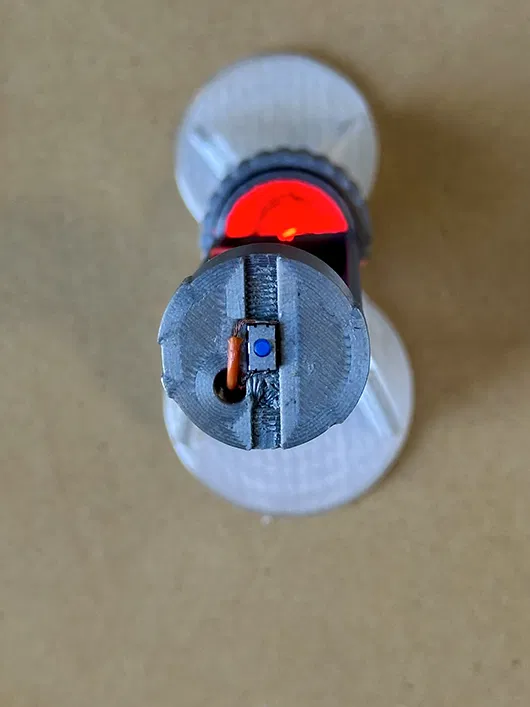 Việc lắp ráp khá dễ hiểu sau khi bạn đã in xong các chi tiết. Về phần mạch điện, hãy xem video bên dưới và các hình ảnh đính kèm. Hai đèn LED sẽ đặt vào rãnh bên trong nắp, đèn trắng hướng về phía thấu kính flash và đèn đỏ đặt ngay phía sau nó.