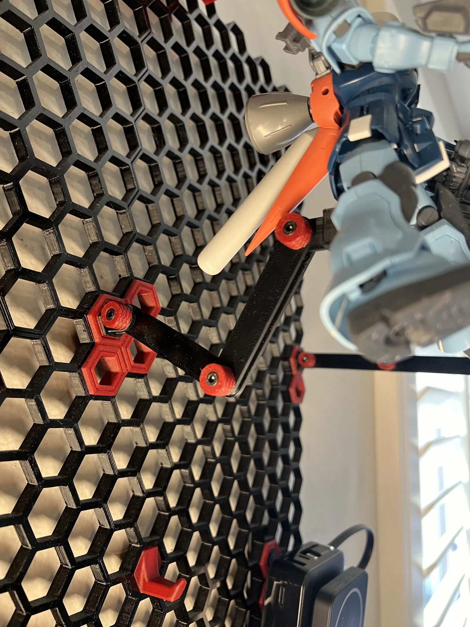 Chào các bạn, mình thiết kế món này không chỉ để giữ chắc mô hình mà còn để trưng bày theo một phong cách rất riêng. Mình muốn tạo ra thứ gì đó có khả năng linh hoạt, cho phép mình điều chỉnh góc độ để tạo dáng cho Gundam như đang bay lơ lửng ngoài vũ trụ vậy.