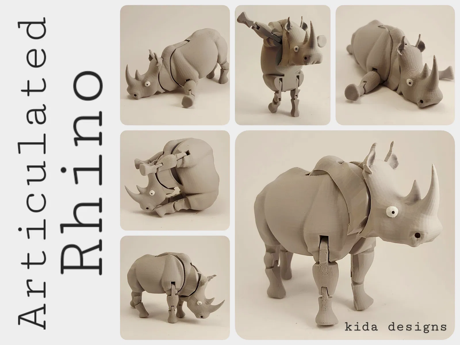 Tê giác khớp nối (Articulated Rhino) - In nguyên khối