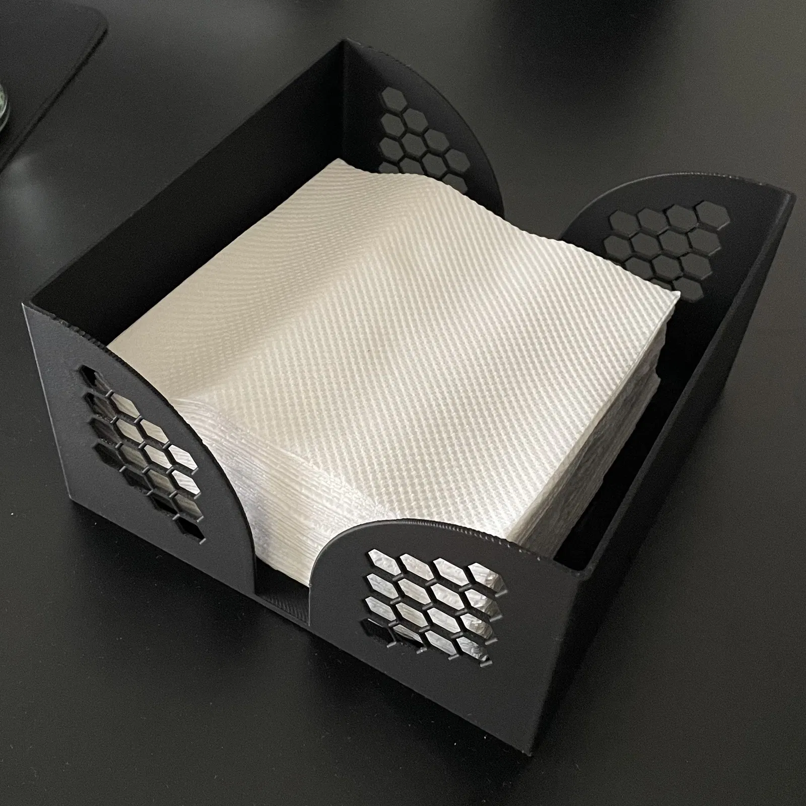 Tự in ngay chiếc giá đỡ khăn giấy họa tiết lục giác cực đẹp cho bàn ăn của bạn. Với kích thước lớn 180x180x90mm, sản phẩm này rất dễ in, phù hợp cho nhiều loại khăn giấy khác nhau.