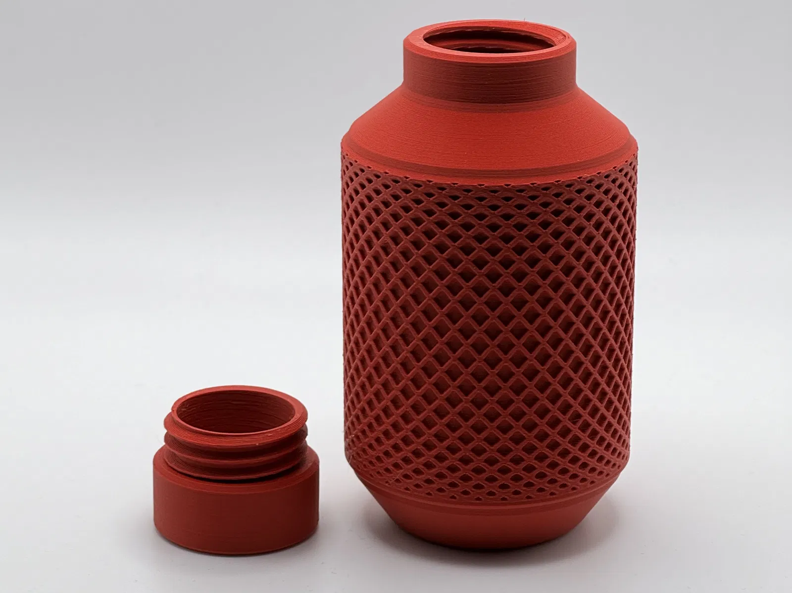 Mẫu bình đựng có họa tiết đa giác độc đáo, lấy cảm hứng từ hũ đất nung truyền thống. Thiết kế bao gồm ren vặn nắp chắc chắn, phù hợp để in trang trí với chất lượng chi tiết cao.