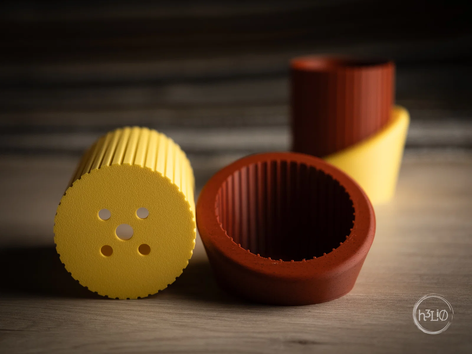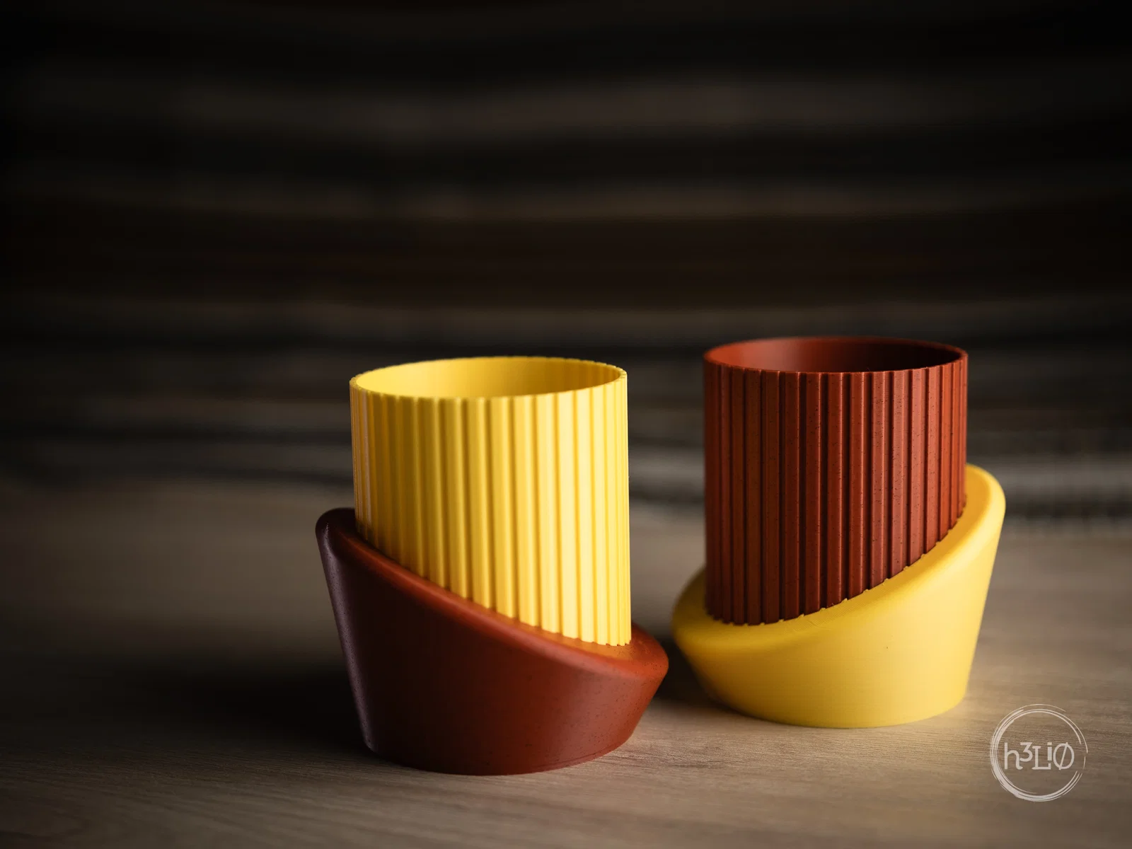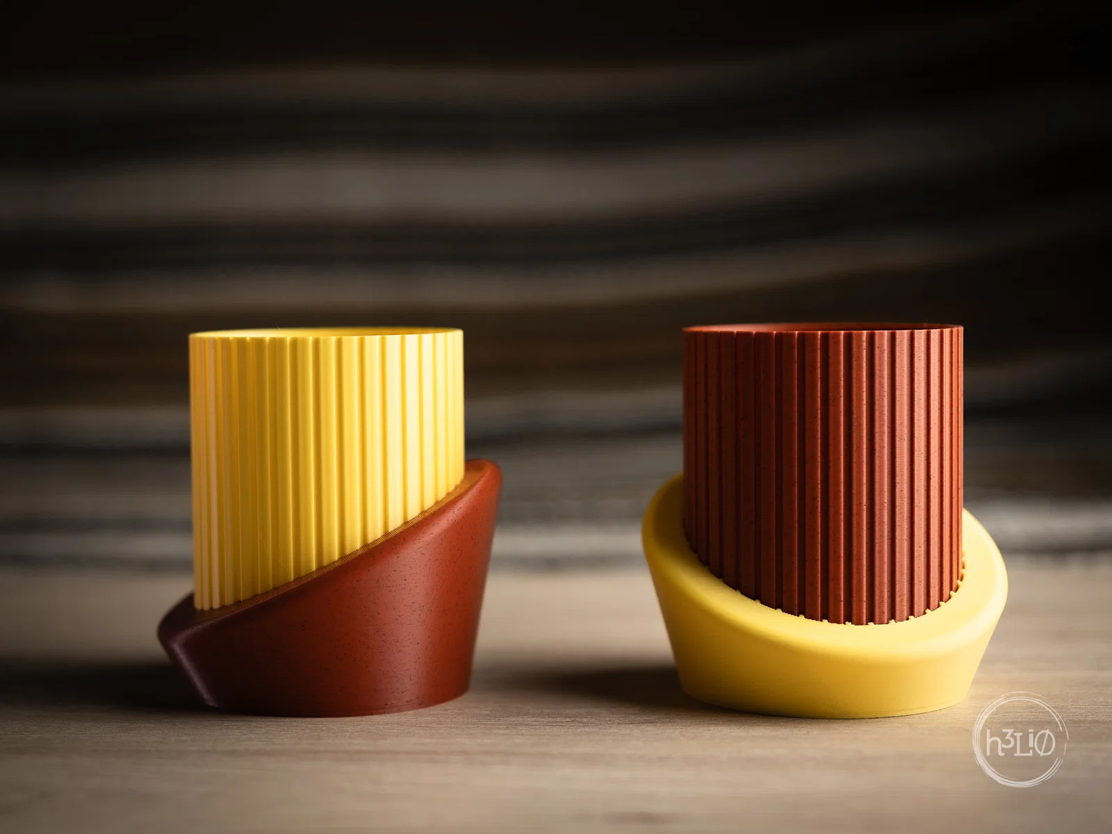 Ảnh minh họa được in bằng nhựa PLA màu vàng nhám và PLA giả đá gạch.