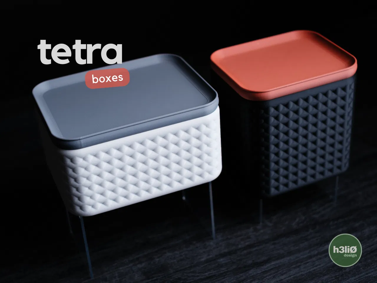 Bộ sưu tập hộp tetra theo phong cách tối giản hiện đại, tích hợp nắp nam châm tiện lợi với hai kích thước tùy chọn. Thiết kế thông minh không cần hỗ trợ khi in, rất phù hợp để trang trí nhà cửa hoặc lưu trữ đồ dùng nhỏ một cách tinh tế.