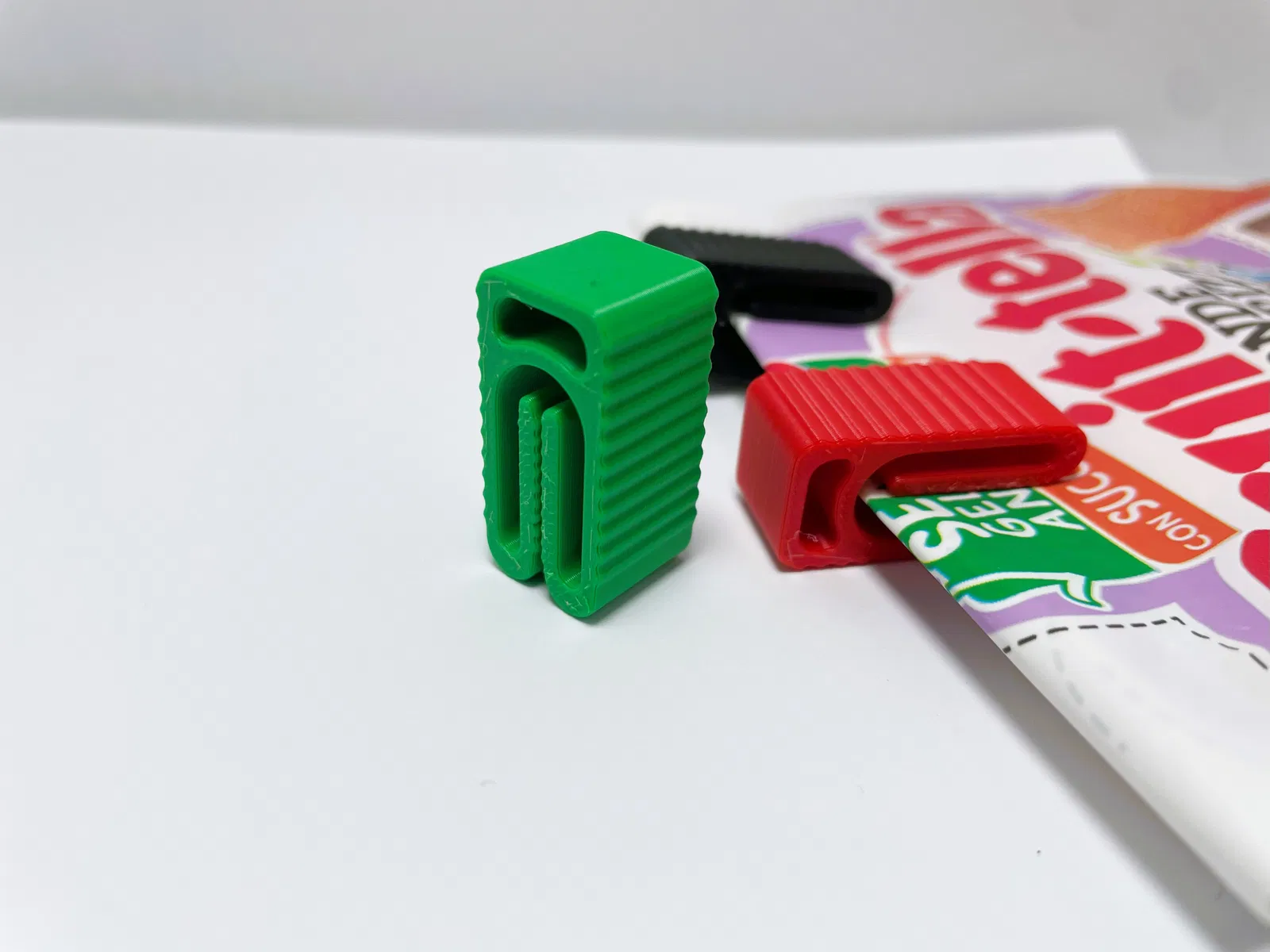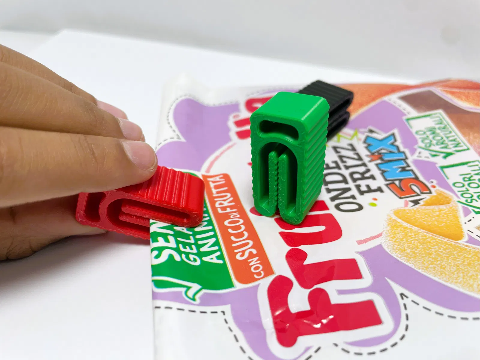 Kẹp miệng túi V2 là một thiết kế đơn giản, hiệu quả giúp bạn đóng kín các loại túi và bao bì thực phẩm. Với phần bề mặt được làm nhám để dễ cầm nắm, sản phẩm này vô cùng tiết kiệm nhựa và dễ dàng in ấn tại nhà.