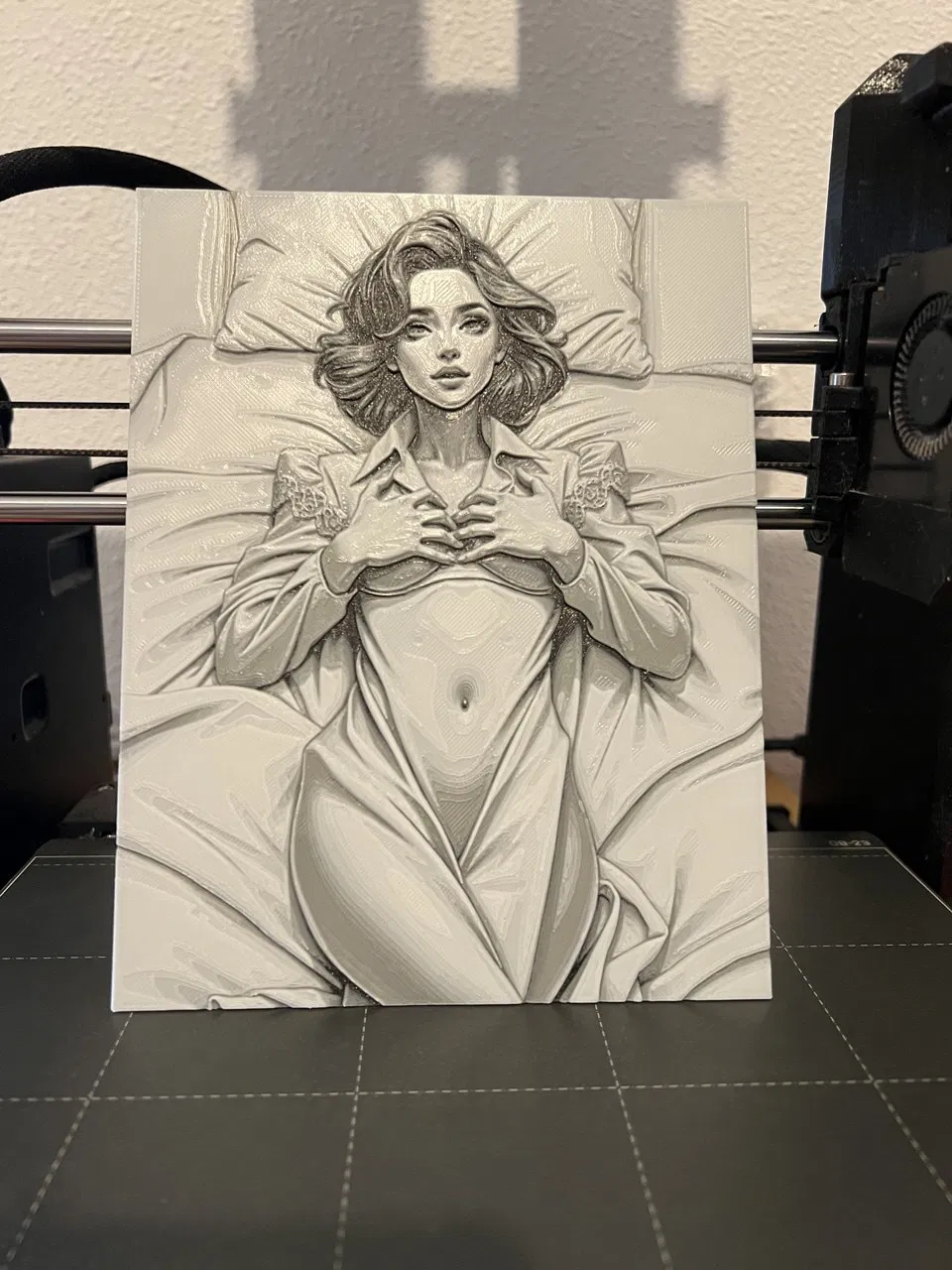 Mô hình nghệ thuật Hueforge khắc họa một người phụ nữ đang nằm thư giãn trên giường với vẻ ngoài thanh tao và ánh nhìn đầy cuốn hút. Thiết kế được tối ưu hóa để in 3D dễ dàng với 3 màu sắc, mang lại chi tiết sắc nét và độ tương phản ấn tượng.