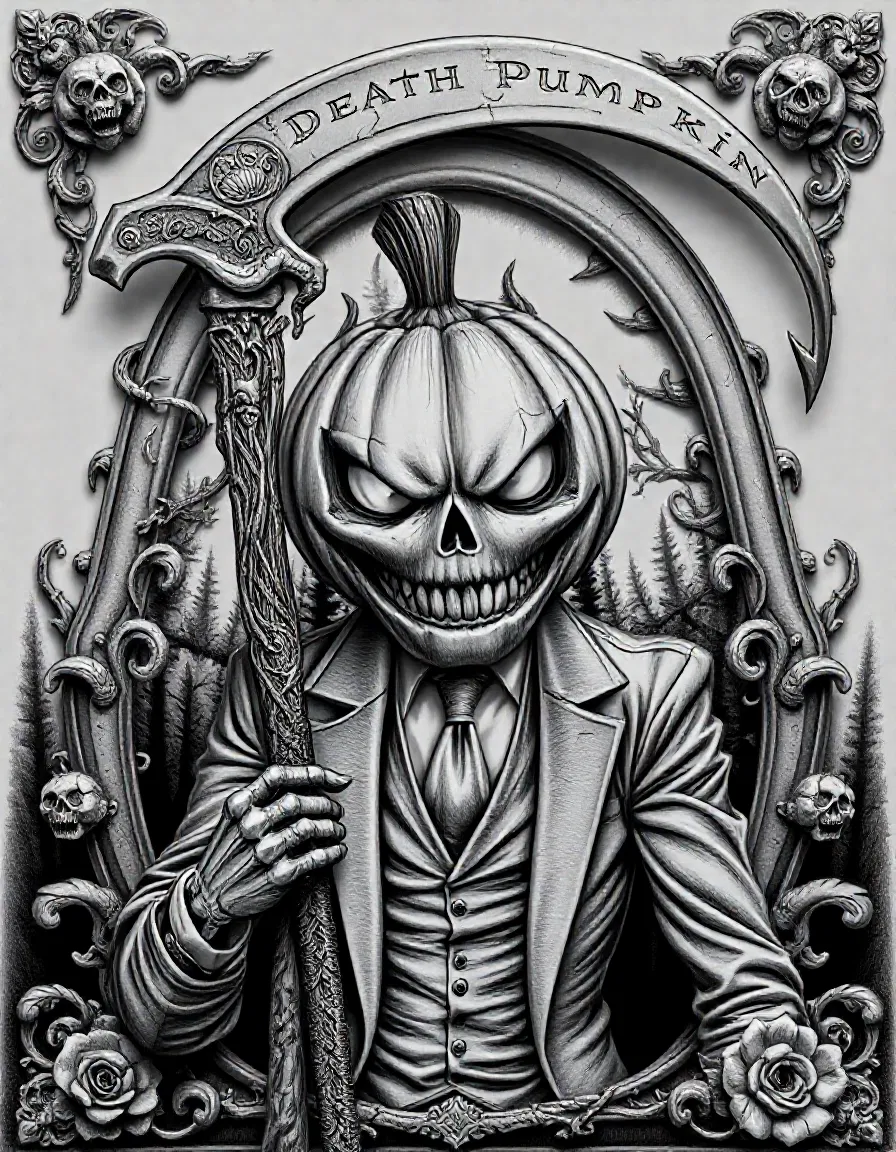Hãy quên đi mấy quả bí ngô thân thiện ngoài hiên nhà đi. Chàng Jack-o'-Lantern bảnh bao này không đến để trang trí đâu—hắn đến để thu hoạch linh hồn đấy. Với bộ vest lịch lãm, chiếc lưỡi hái chết chóc và cái đầu bí ngô chứa đầy ý đồ đen tối, hắn đang định nghĩa lại nỗi kinh hoàng đêm Halloween. Đây không phải người làm vườn mà bạn mong đợi, nhưng chắc chắn là kẻ mà bạn xứng đáng gặp nếu dám đụng vào bí ngô năm nay. 🎃☠