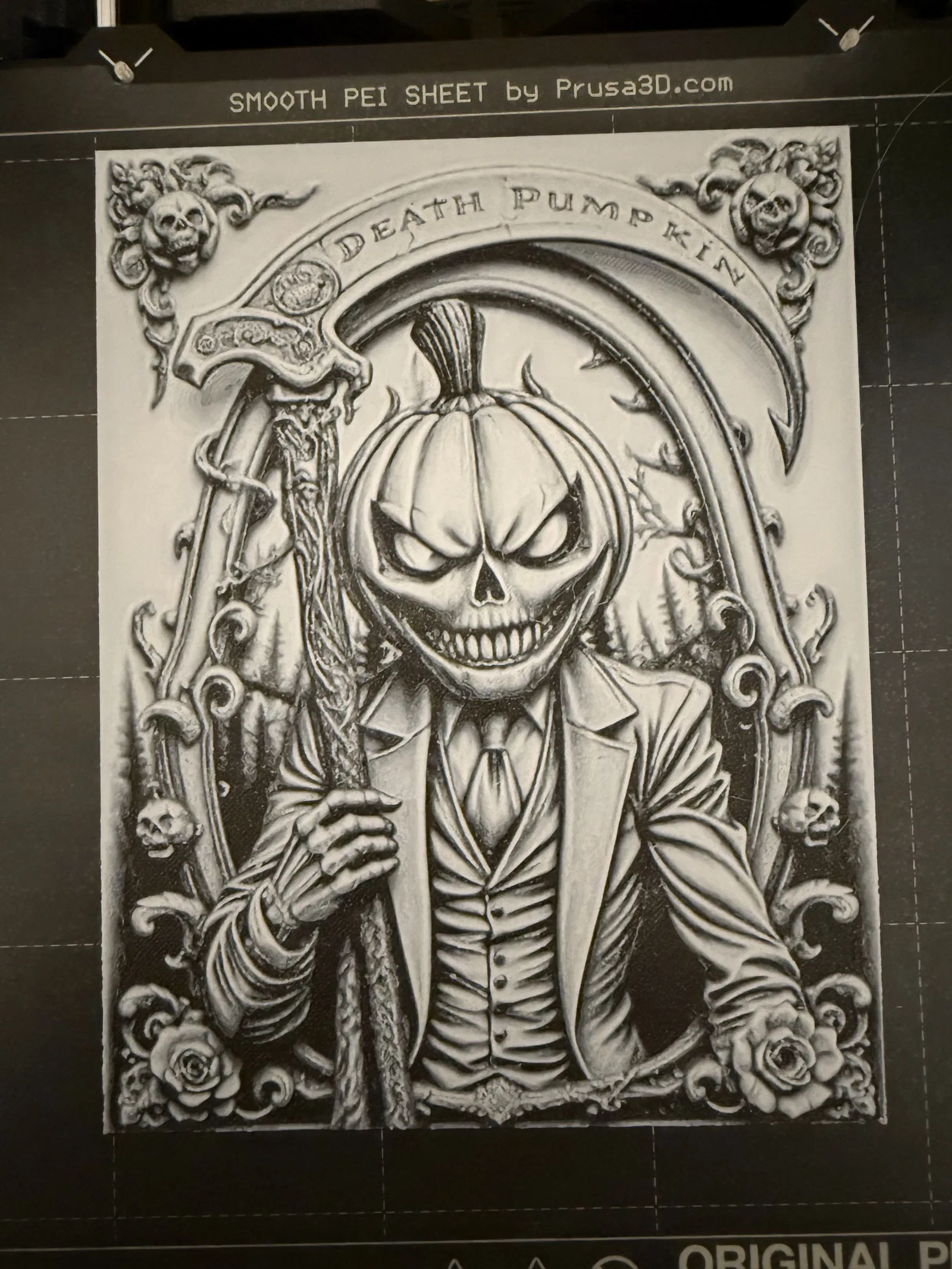 Gặp gỡ Death Jack-o'-lantern, gã bí ngô diện suit lịch lãm với chiếc lưỡi hái sắc bén sẵn sàng thu hoạch linh hồn. Mẫu thiết kế Hueforge cực chất, dễ in cho mùa Halloween thêm phần kinh dị và đầy phong cách.