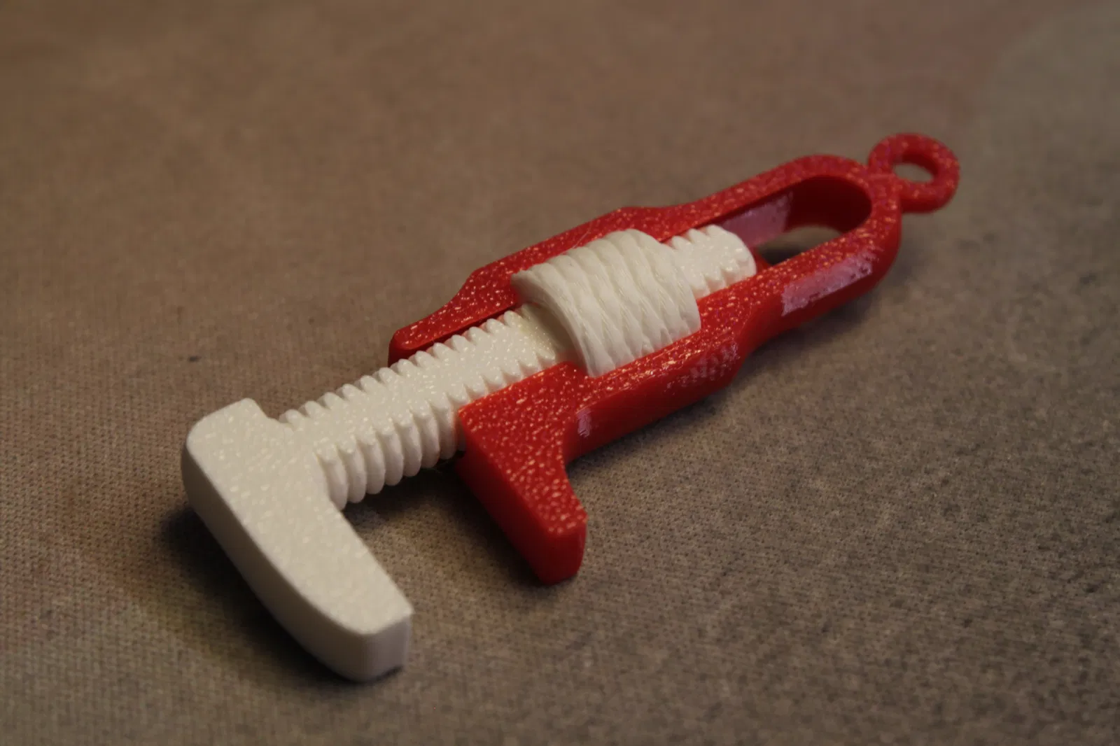 Một chiếc cờ lê điều chỉnh được dùng làm móc khóa vô cùng đơn giản và dễ in. Sản phẩm gồm chỉ ba bộ phận, với độ dung sai rộng rãi nhưng vẫn giữ được công năng tuyệt vời, rất dễ tùy chỉnh màu sắc hoặc thay đổi kích thước (nhỏ nhất mà mình từng in thành công là 40%).