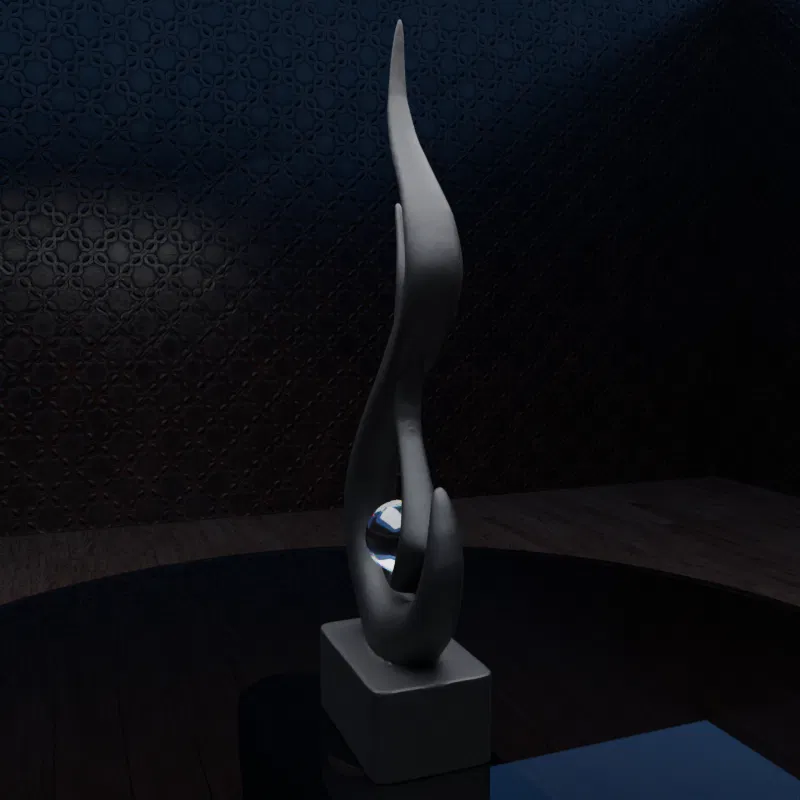 Điểm nhấn đặc biệt của mô hình này nằm ở phần cấu trúc rỗng bên trong, được thiết kế khéo léo để ôm trọn một quả cầu nhỏ, tạo nên sự cân bằng hoàn hảo giữa tính rắn rỏi của khối đế và sự mềm mại của những đường nét uốn lượn. Đây không chỉ là một món đồ in 3D thông thường, mà còn là một tác phẩm điêu khắc nghệ thuật mini mà bạn có thể dễ dàng đặt trên bàn làm việc, kệ sách, hay tủ trưng bày. Sự kết hợp giữa vật liệu in và quả cầu trang trí chắc chắn sẽ thu hút ánh nhìn của bất kỳ ai ghé thăm không gian của bạn.