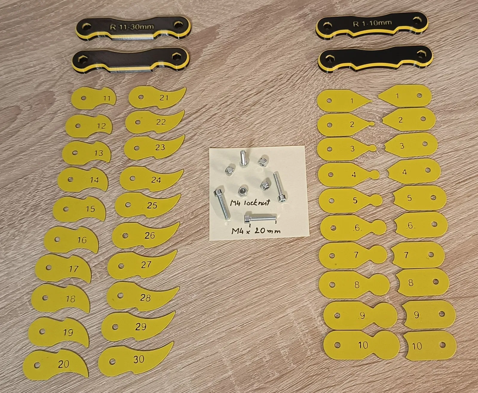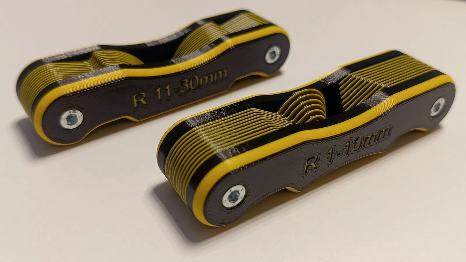Bộ thước đo bán kính với các kích thước từ 1-10mm và 11-30mm. Đây là bản remix được cải tiến giúp bạn có thể kết hợp cùng bộ 31-50mm để tạo thành một bộ công cụ đo lường hoàn chỉnh và chính xác cho các nhu cầu kỹ thuật.