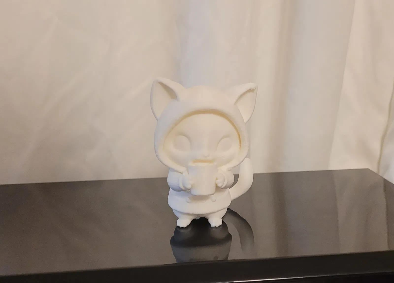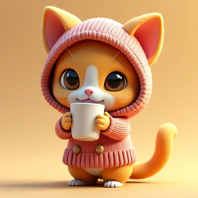 Mô hình chú mèo dễ thương cùng tách cà phê được tạo từ công cụ Image-to-3D. Sản phẩm có chi tiết xinh xắn, rất phù hợp để in 3D và tự tay tô điểm thêm các chi tiết nhỏ như râu mèo để hoàn thiện.