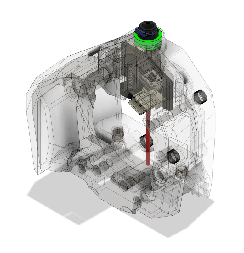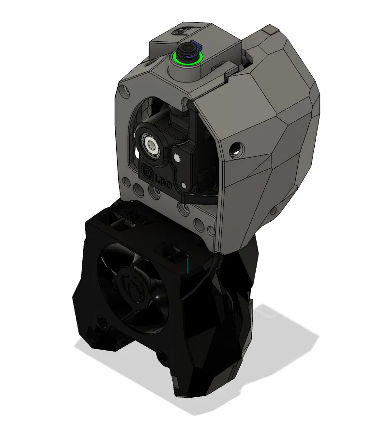 Bản này cũng bao gồm một giá đỡ hotend FilamAtrix đã được chỉnh sửa nhẹ cho Revo Voron. Do cụm Orbiter 2 hơi cấn vào quạt thổi của Stealthburner, nên đường dẫn nhựa đã được dời lùi lại 2mm.