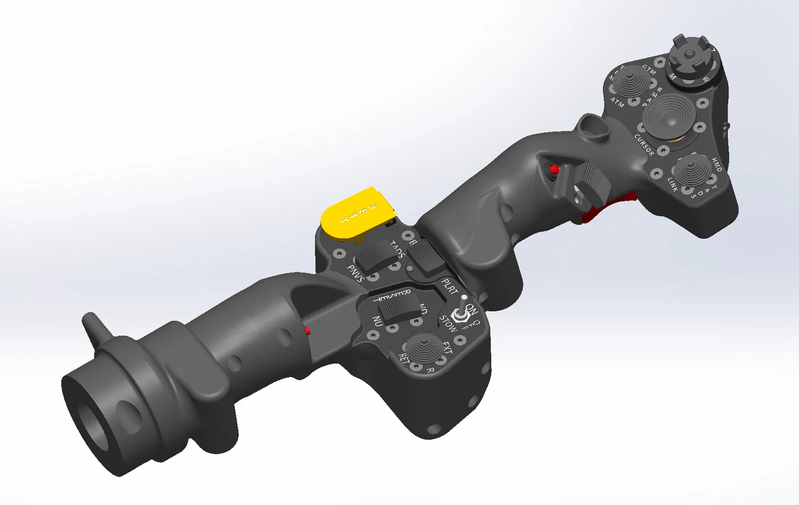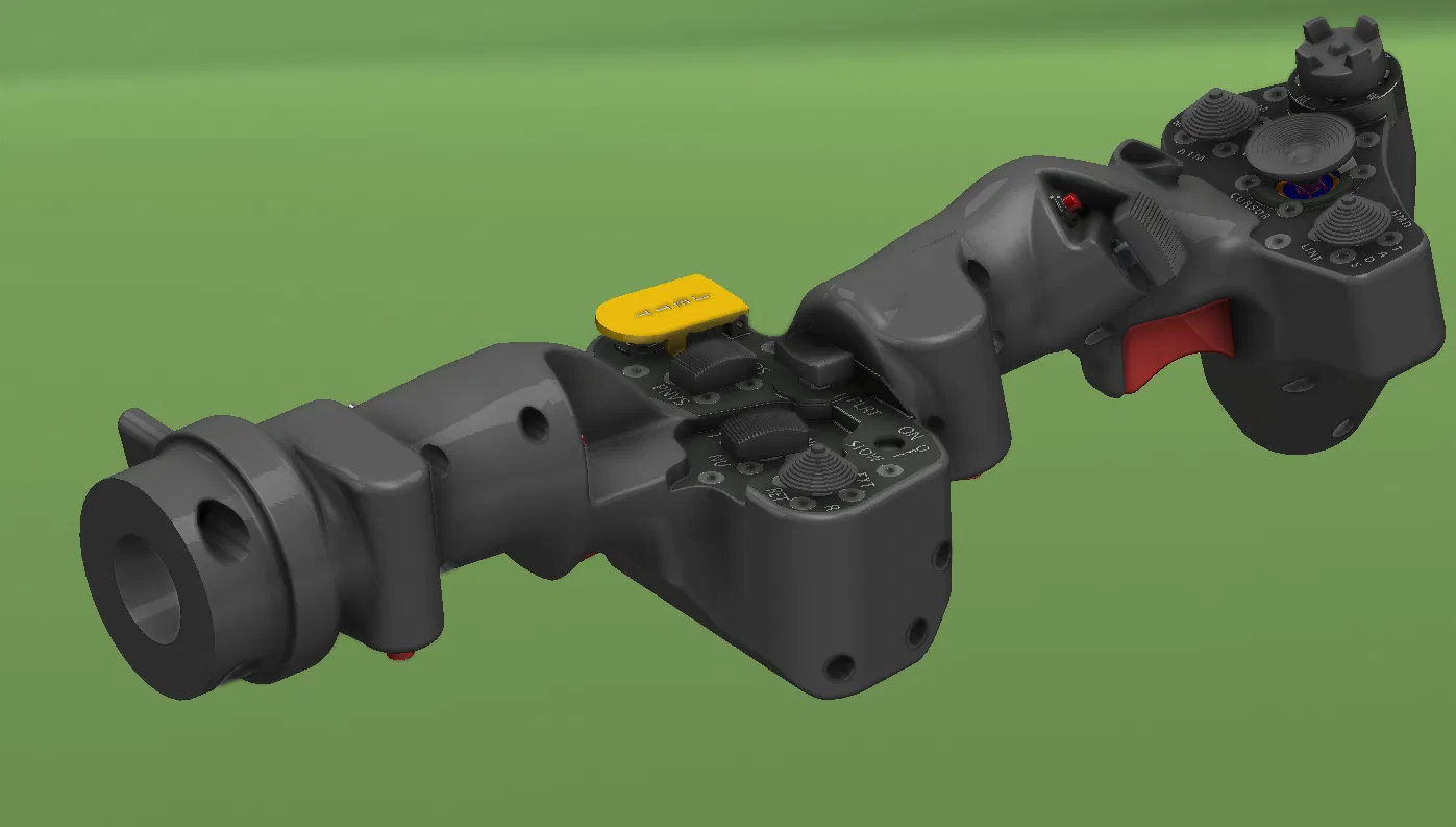 Mô hình in 3D tay cầm collective cho trực thăng AH-64D, mô phỏng theo tỉ lệ 1:1 từ bản vẽ gốc, tích hợp đầy đủ nút bấm chức năng cho DCS. Thiết kế bền bỉ.
