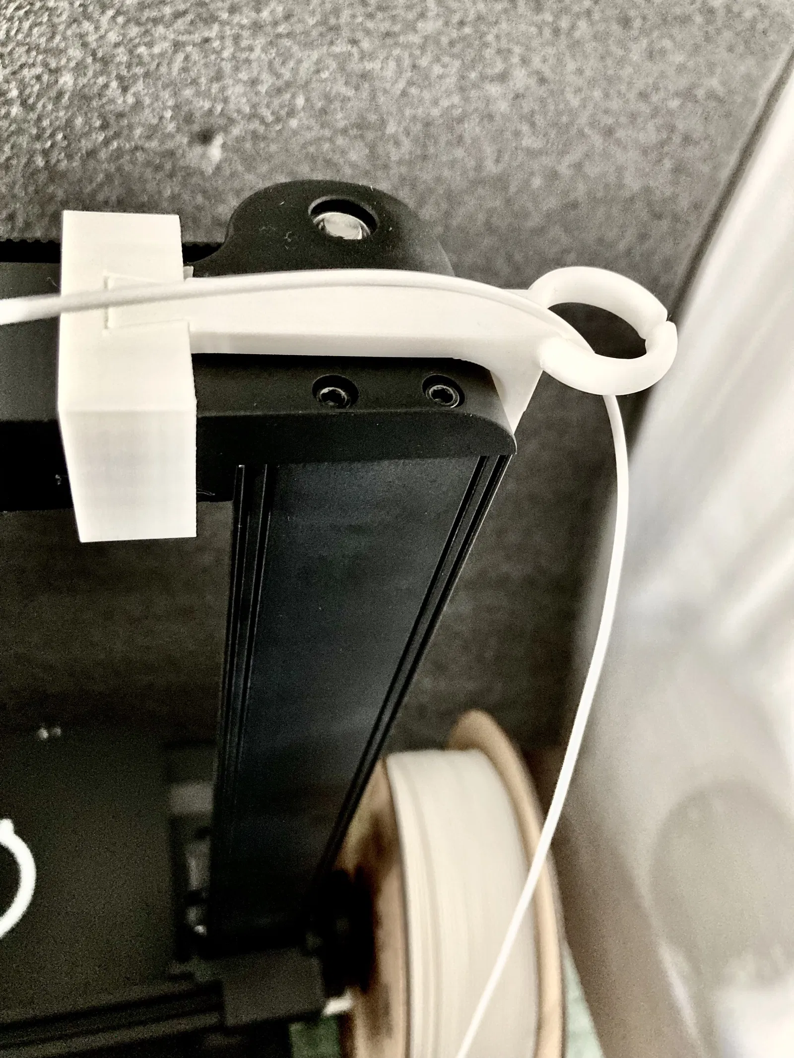 Đây là phụ kiện dẫn sợi nhựa (filament guide) dành cho máy in 3D Creality Ender-3 v3 KE / SE, được lắp ở phía bên phải của máy. Thiết kế có thêm phần hỗ trợ dạng cong dọc theo khung máy.