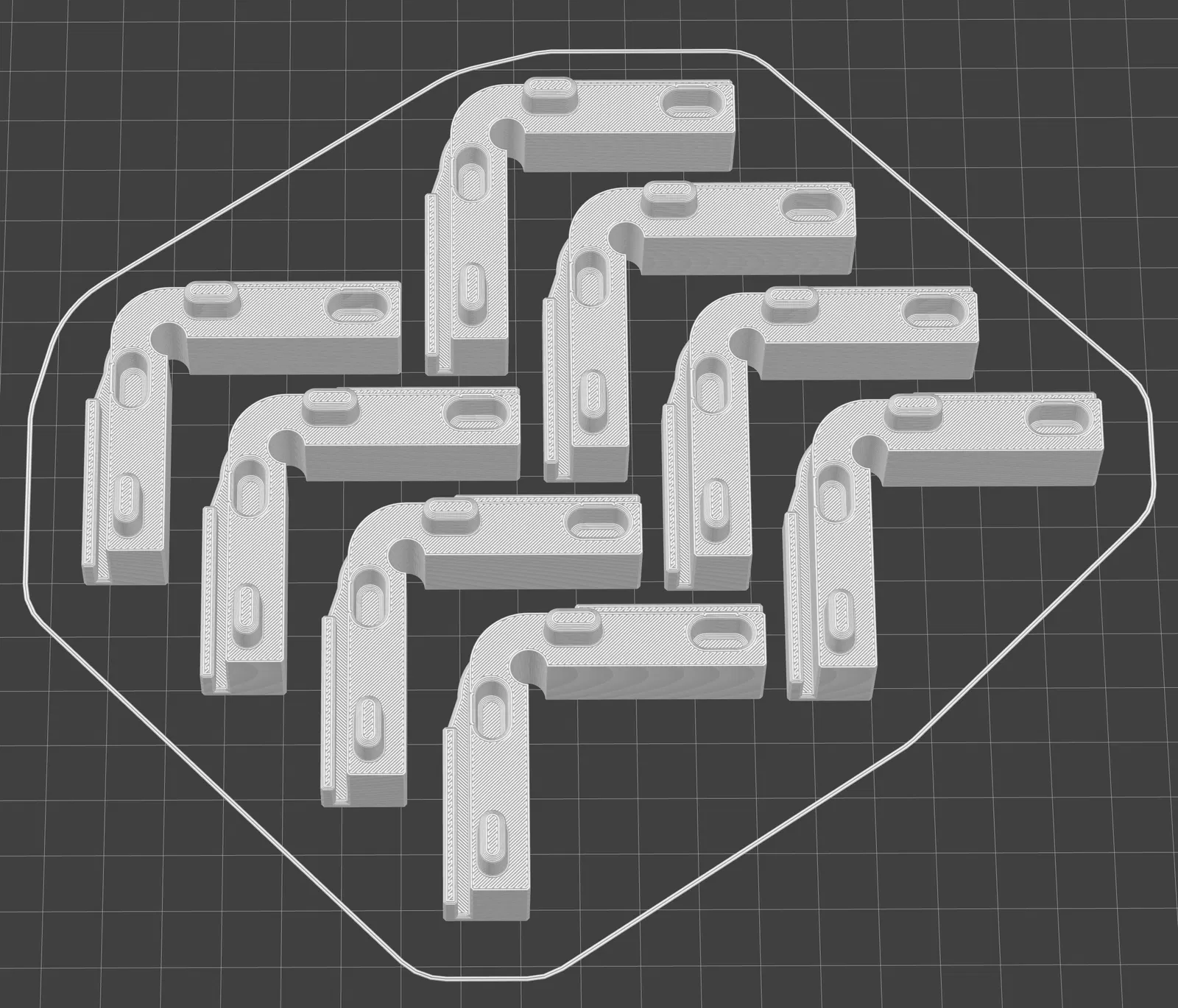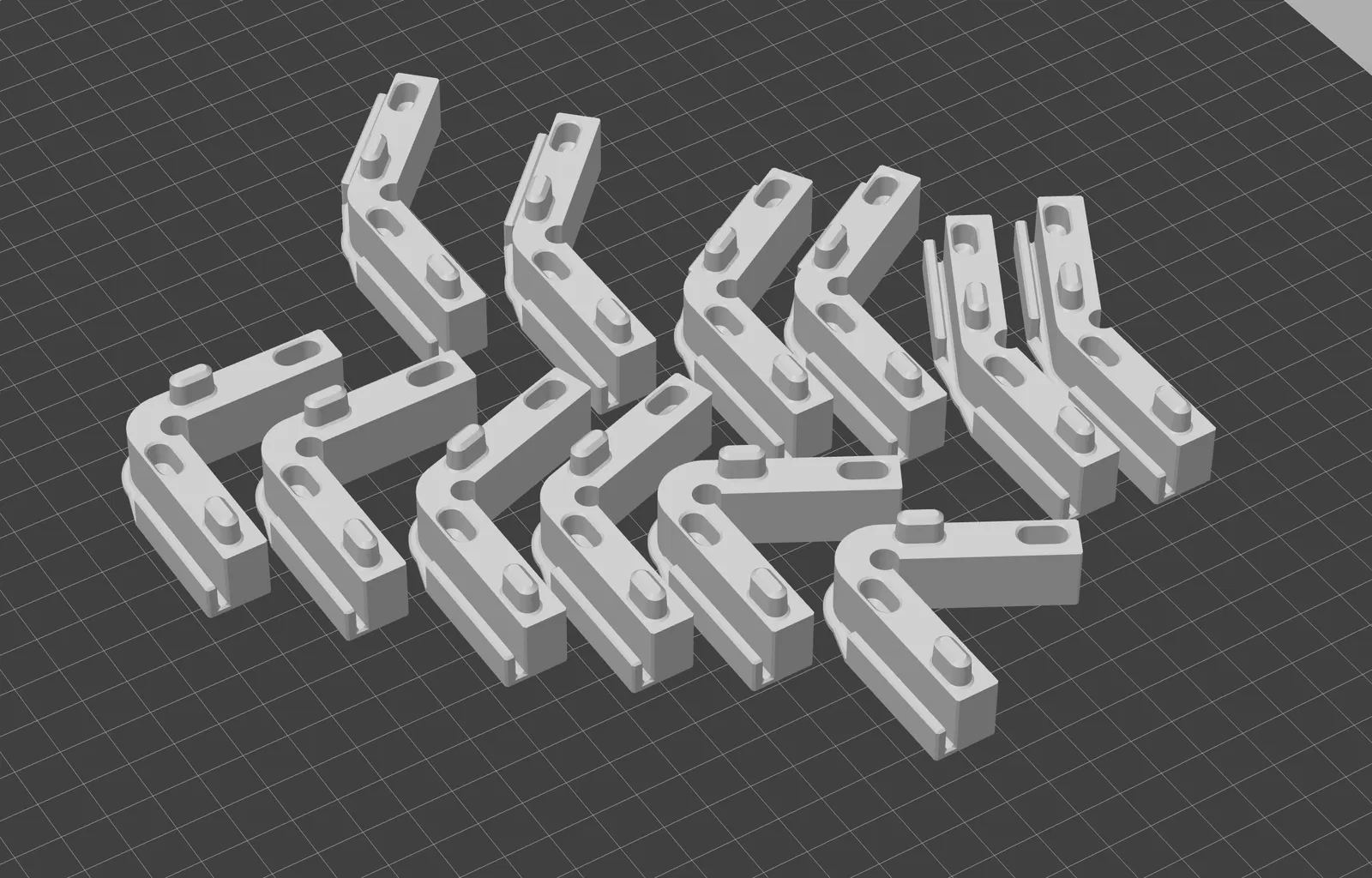 Nếu bác cần đóng hộp vuông, hãy in 8 miếng Corners clamp for cargo straps glue 4 sides 90deg 26mm (hoặc Corners clamp for cargo straps click 4 sides 90deg 26mm) để tạo thành 4 cái kẹp rồi ghép chúng lại với nhau.